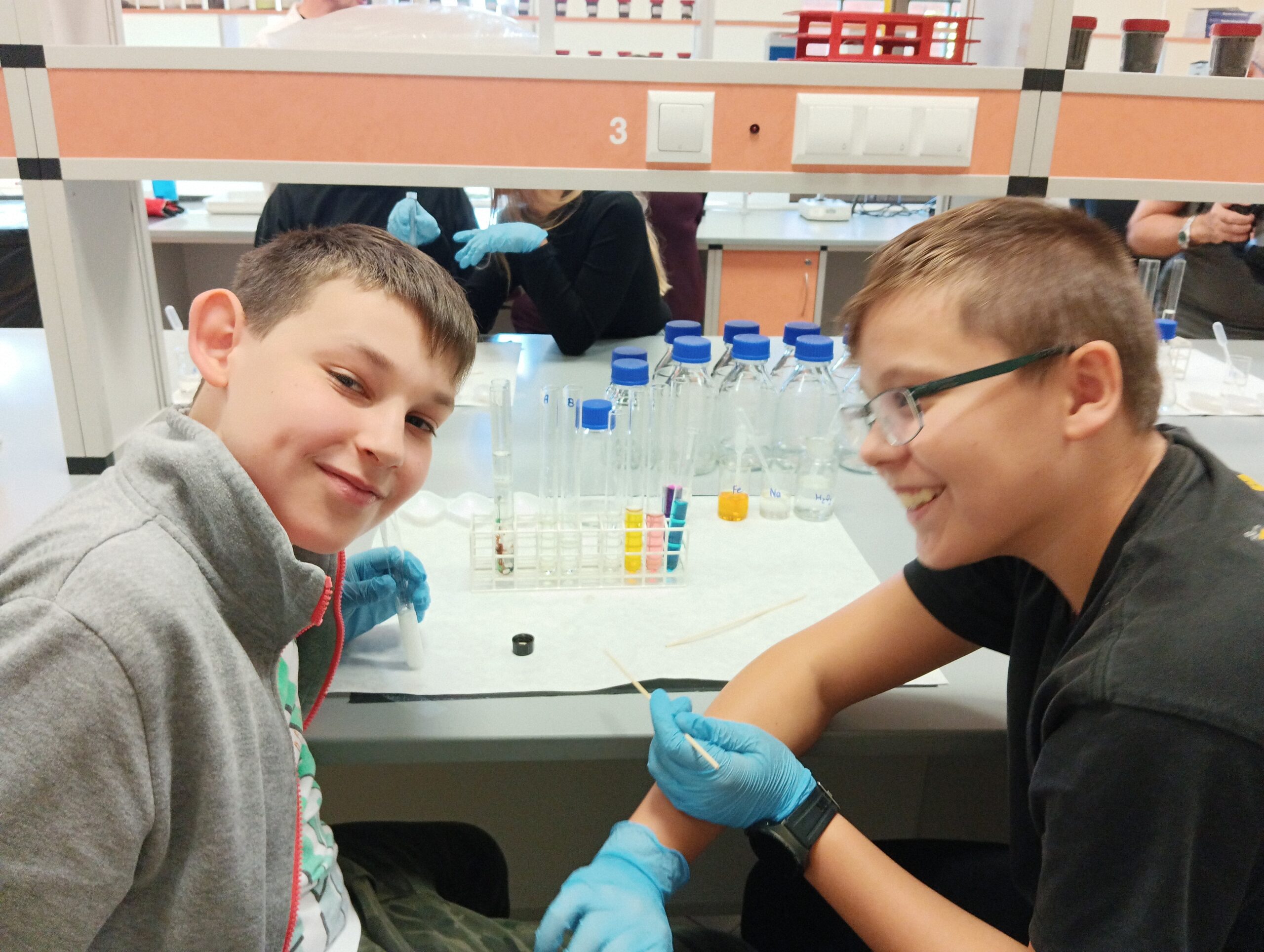 25 września klasa VIa uczestniczyła w warsztatach chemicznych, które odbywały się w ramach Olsztyńskich Dni Nauki i Sztuki. Uczniowie podczas eksperymentów stworzyli między innymi: chemiczny ogródek oraz sztuczną krew. Obserwowali, jak wygląda barwiony ogień oraz doświadczenia z wykorzystaniem suchego lodu. Było rewelacyjnie! Mamy nadzieję, że w przyszłym roku również weźmiemy udział w podobnym wydarzeniu.