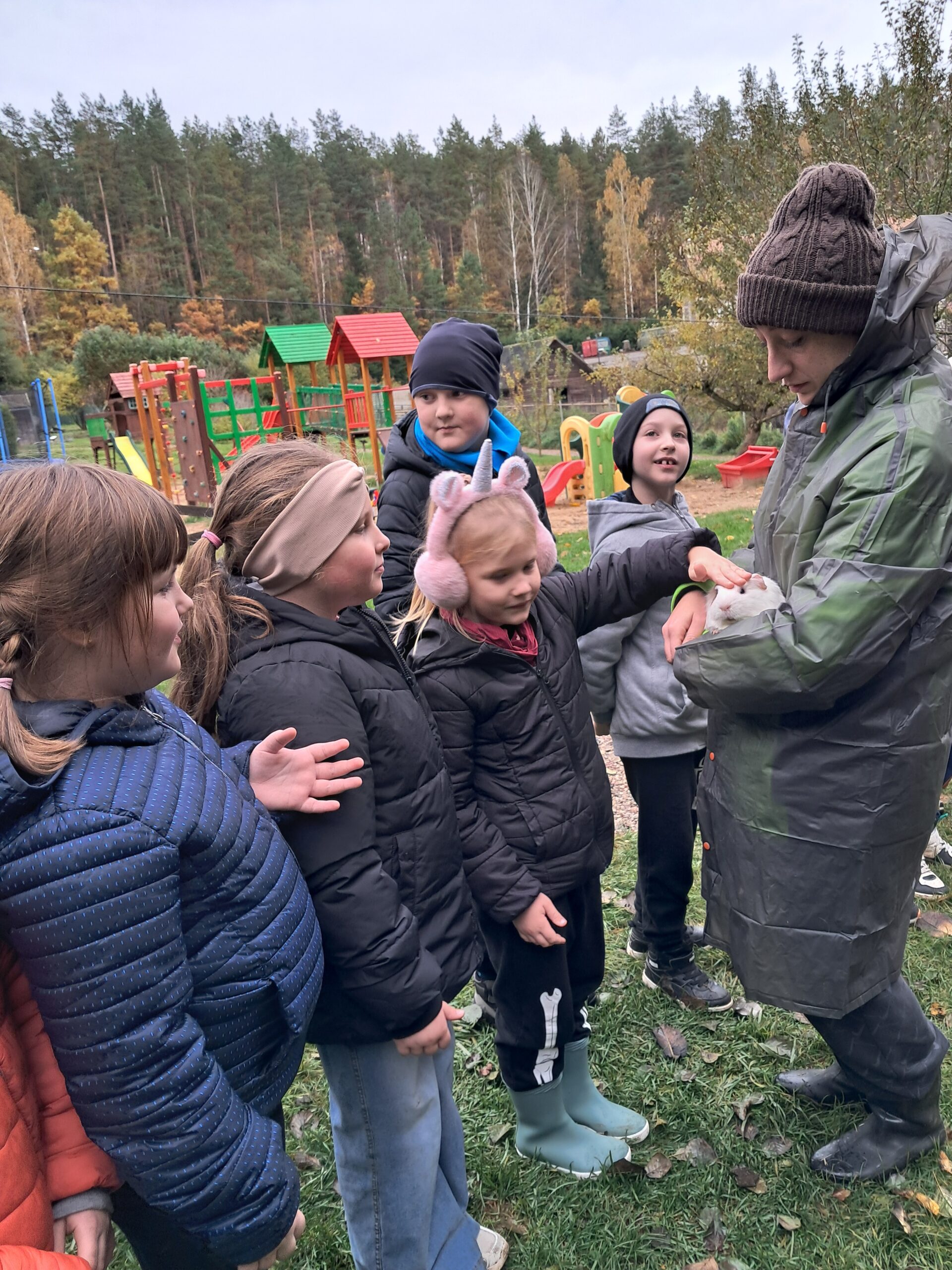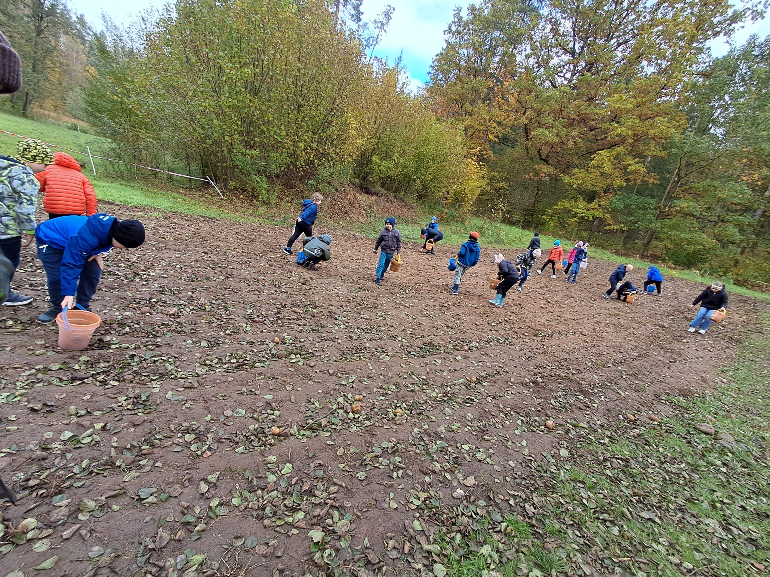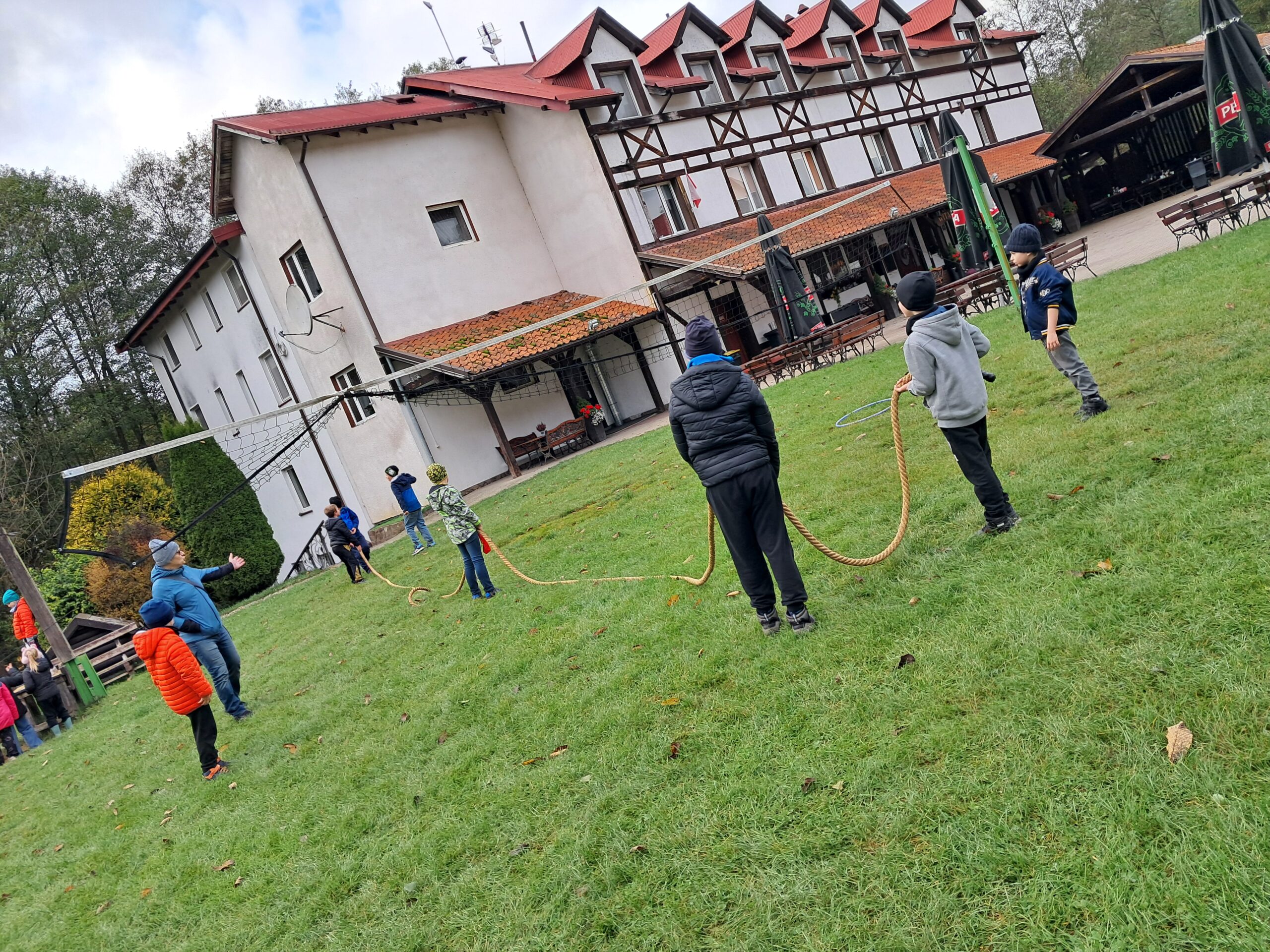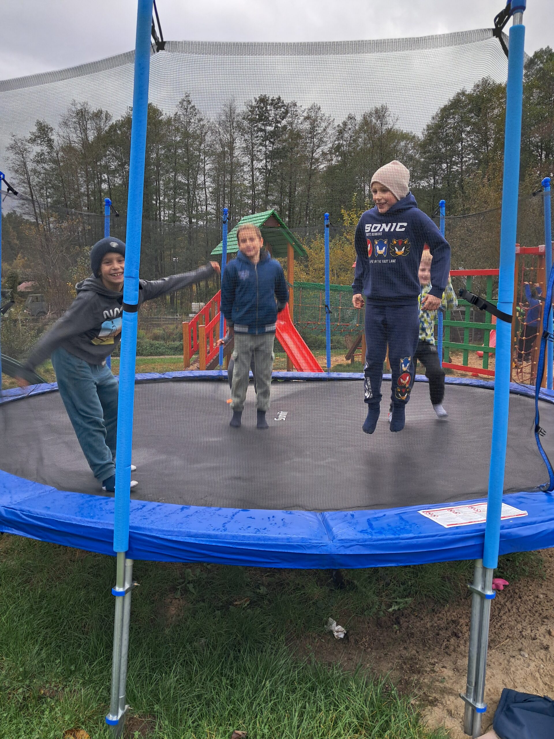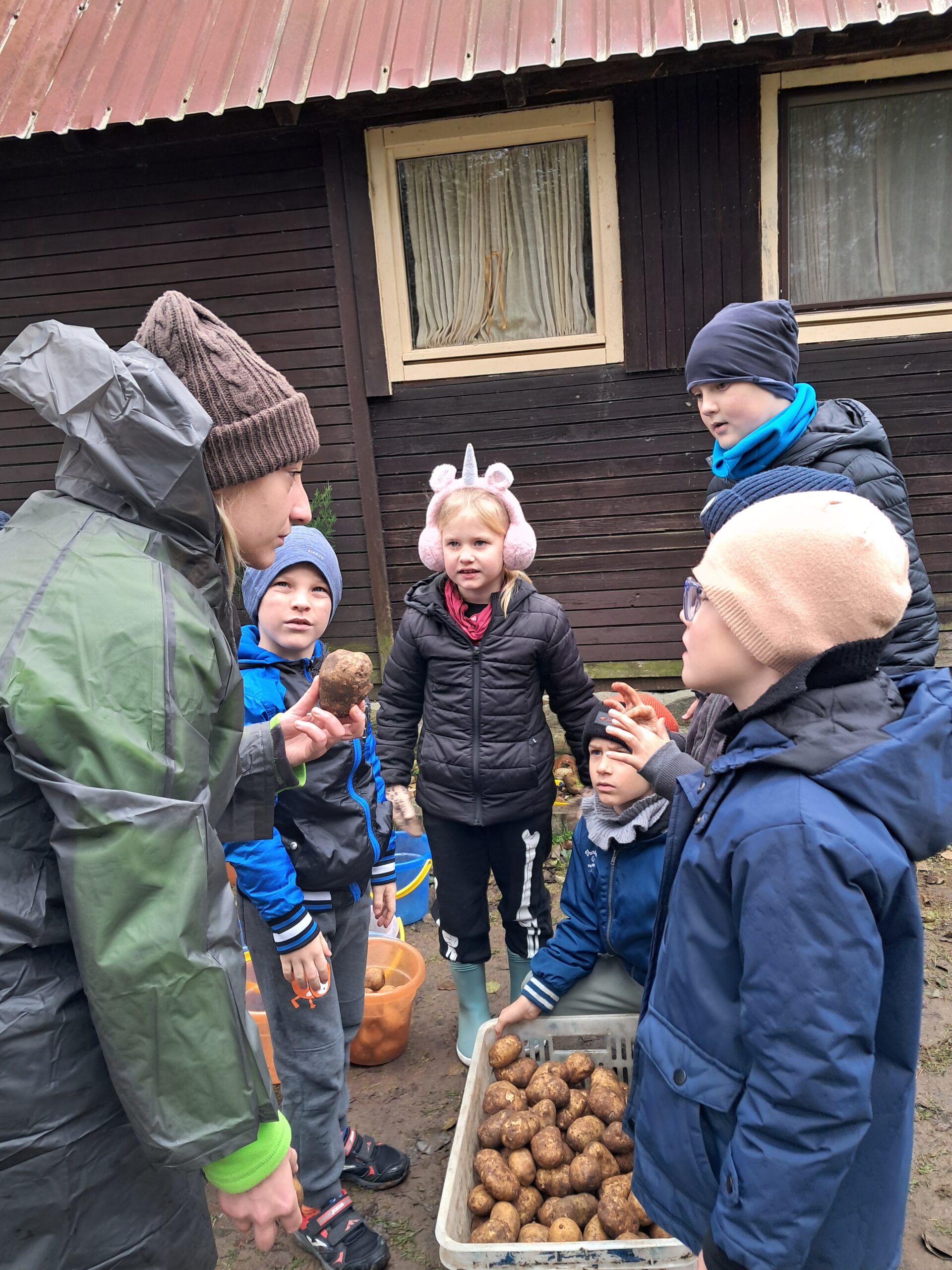 To był dzień pełen ciekawych zajęć. Najpierw pozbieraliśmy ziemniaki z pola, następnie posegregowaliśmy je, a na koniec zjedliśmy upeczone posypując solą. Nakarmiliśmy zwierzęta i sami posmakowaliśmy wiejskiego rosołku. Był też czas na zabawę, przeciąganie liny i skoki na trampolinie. Pogoda była dla nas łaskawa.
