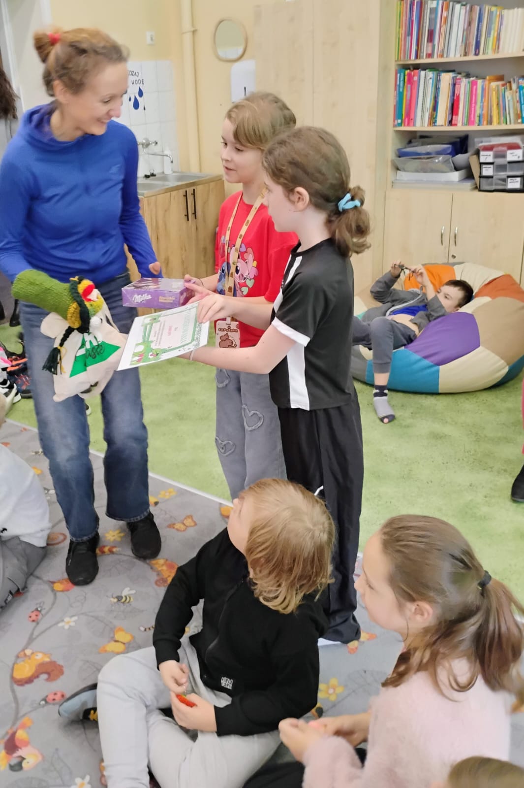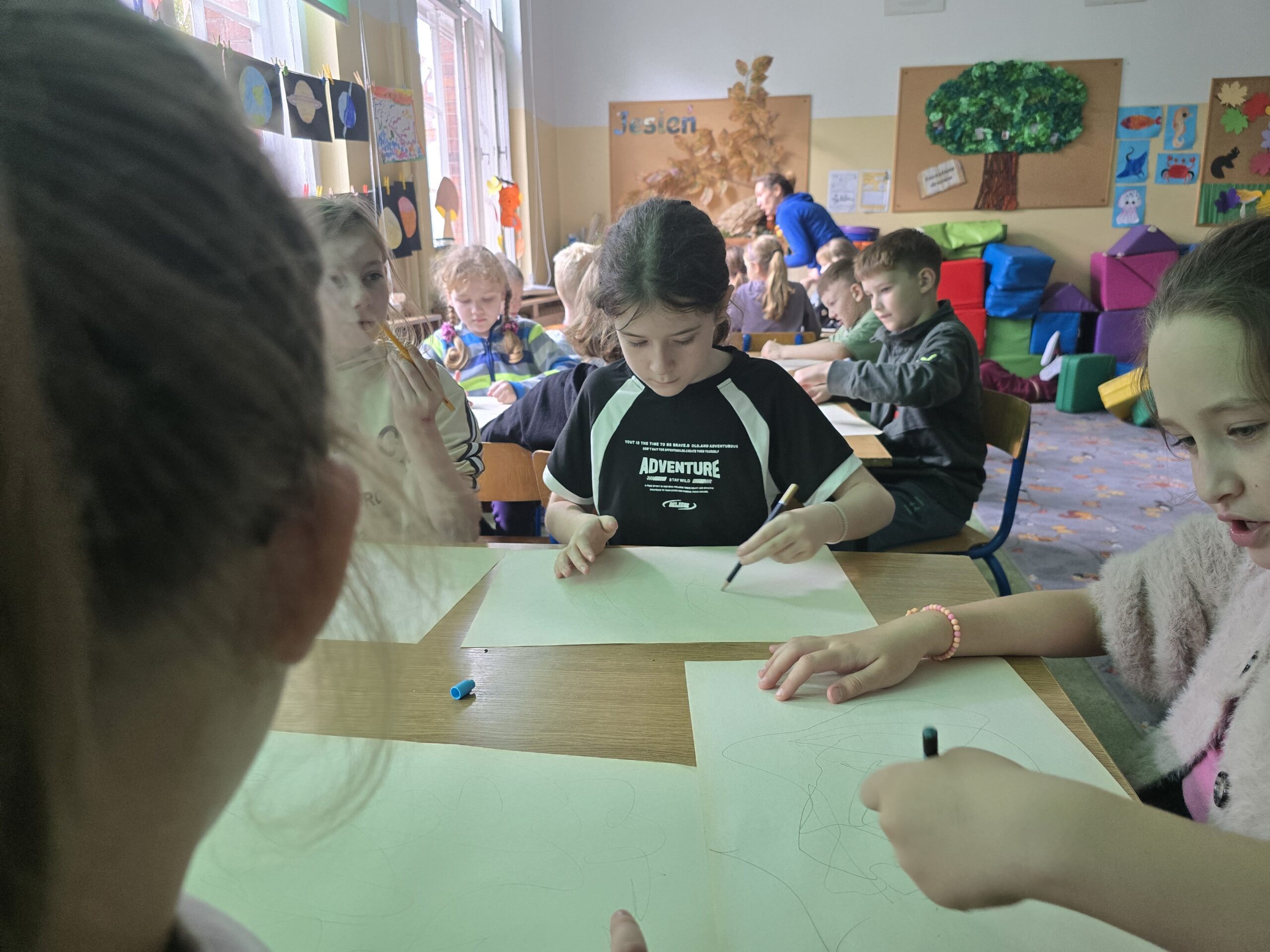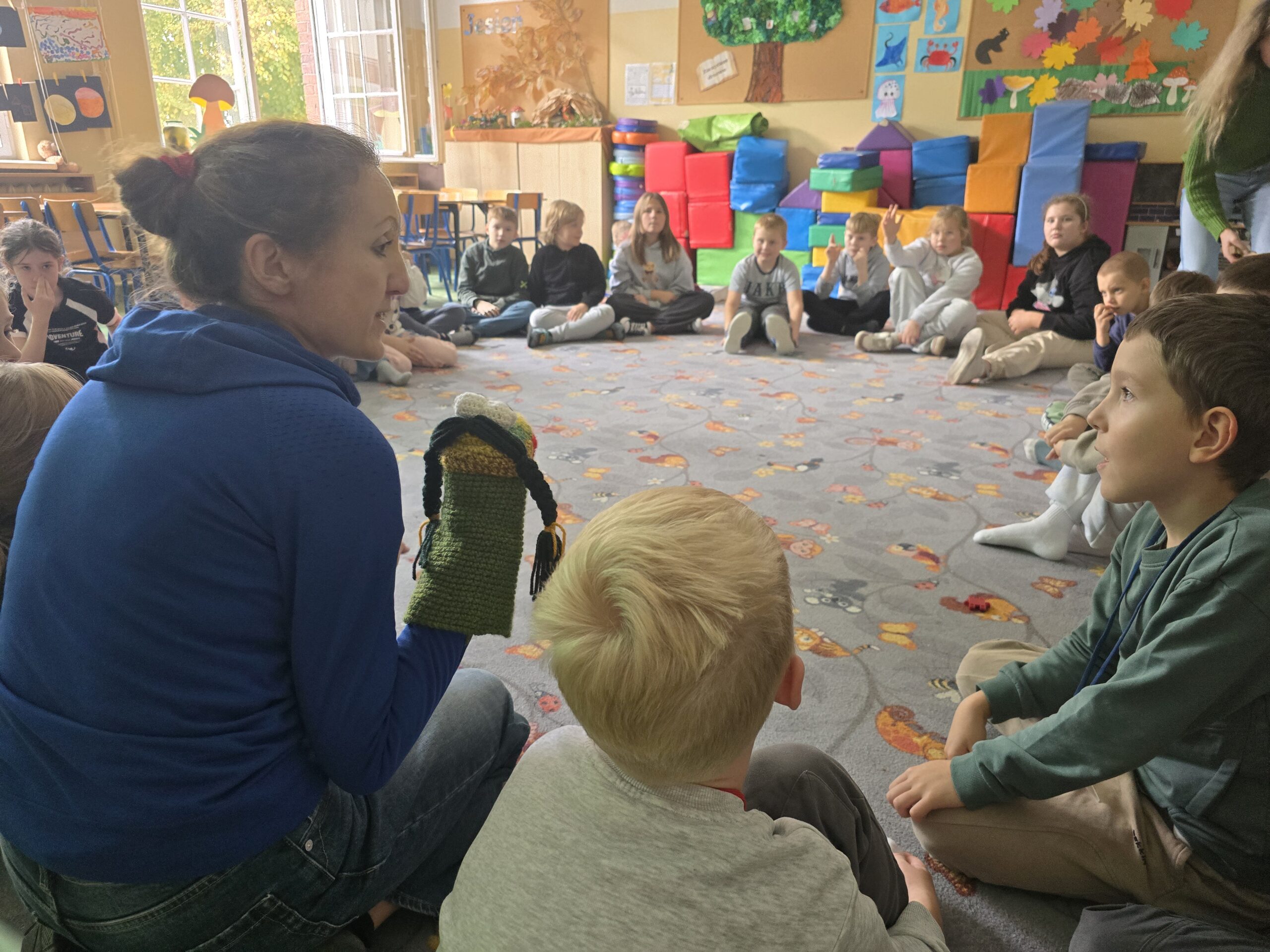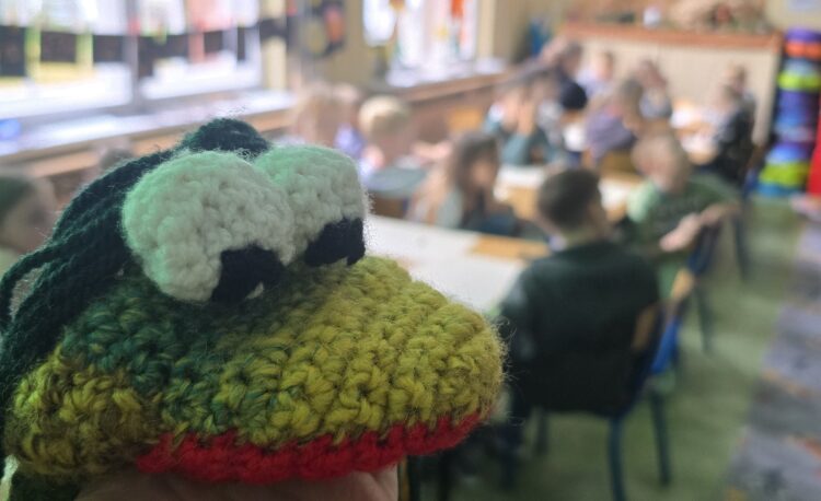 W miniony piątek odwiedziła nas niesamowita postać – Żabka Ewa. Gościni wprowadziła nas w świat gimnastyki mózgu – był czas gdzie nie tylko obie półkule mózgu miały okazję ze sobą współpracować, ale też nasi uczniowie. Każdy miał okazję wcielić się w rolę artysty, który ćwiczył na swoją miarę. Dziękujemy za to relaksujące spotkanie i piękne prezenty.