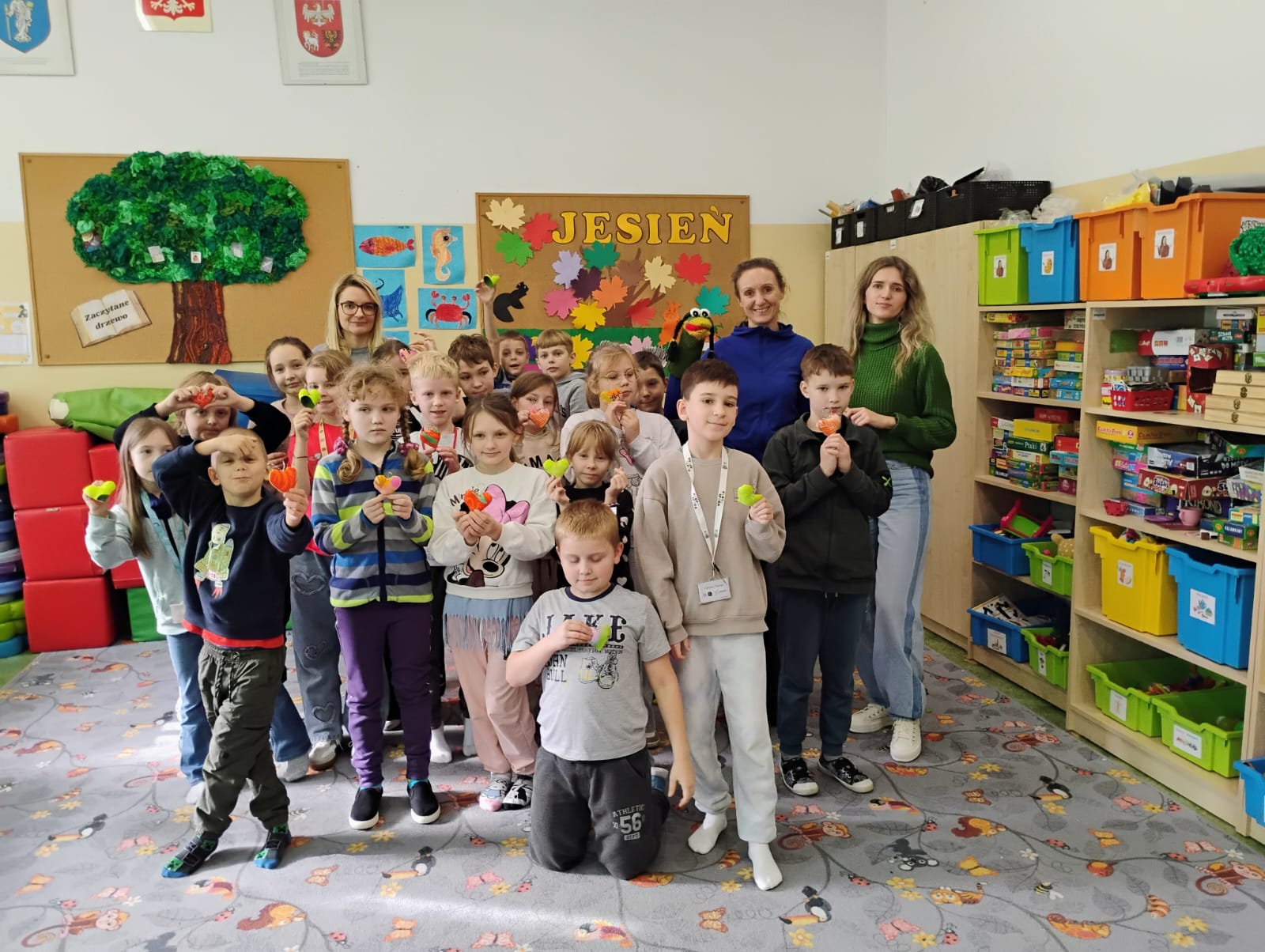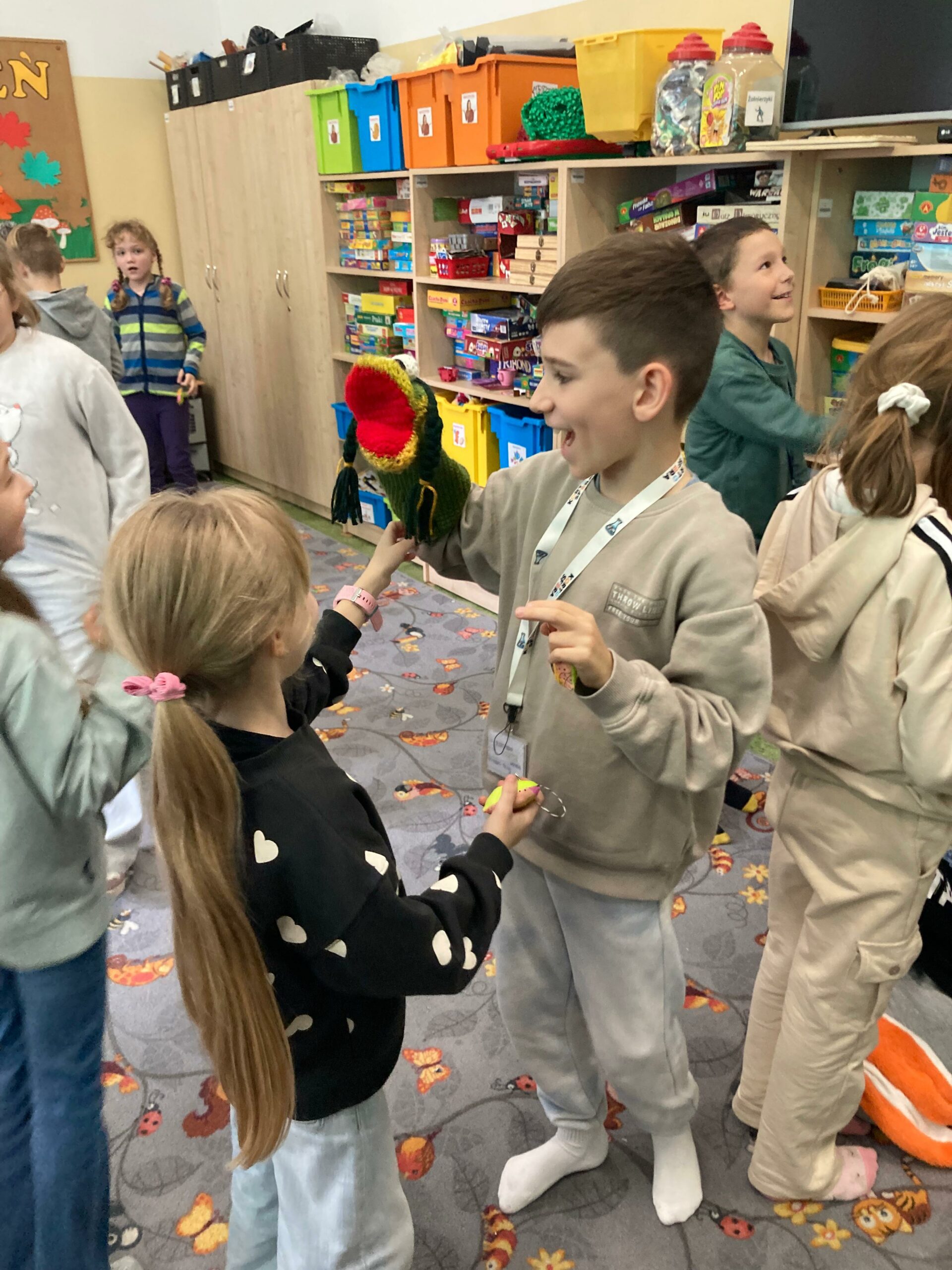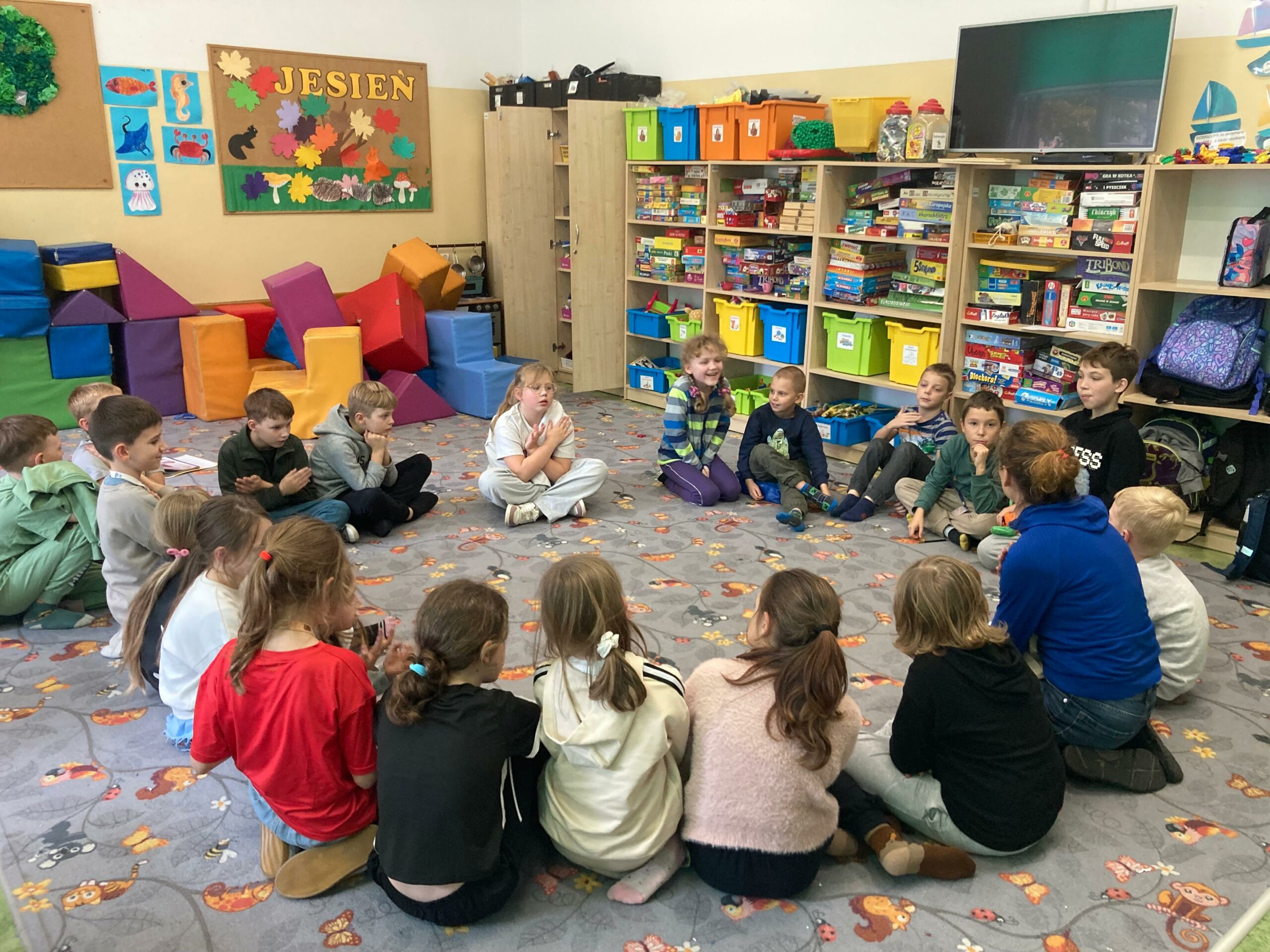 W miniony piątek odwiedziła nas niesamowita postać – Żabka Ewa. Gościni wprowadziła nas w świat gimnastyki mózgu – był czas gdzie nie tylko obie półkule mózgu miały okazję ze sobą współpracować, ale też nasi uczniowie. Każdy miał okazję wcielić się w rolę artysty, który ćwiczył na swoją miarę. Dziękujemy za to relaksujące spotkanie i piękne prezenty.