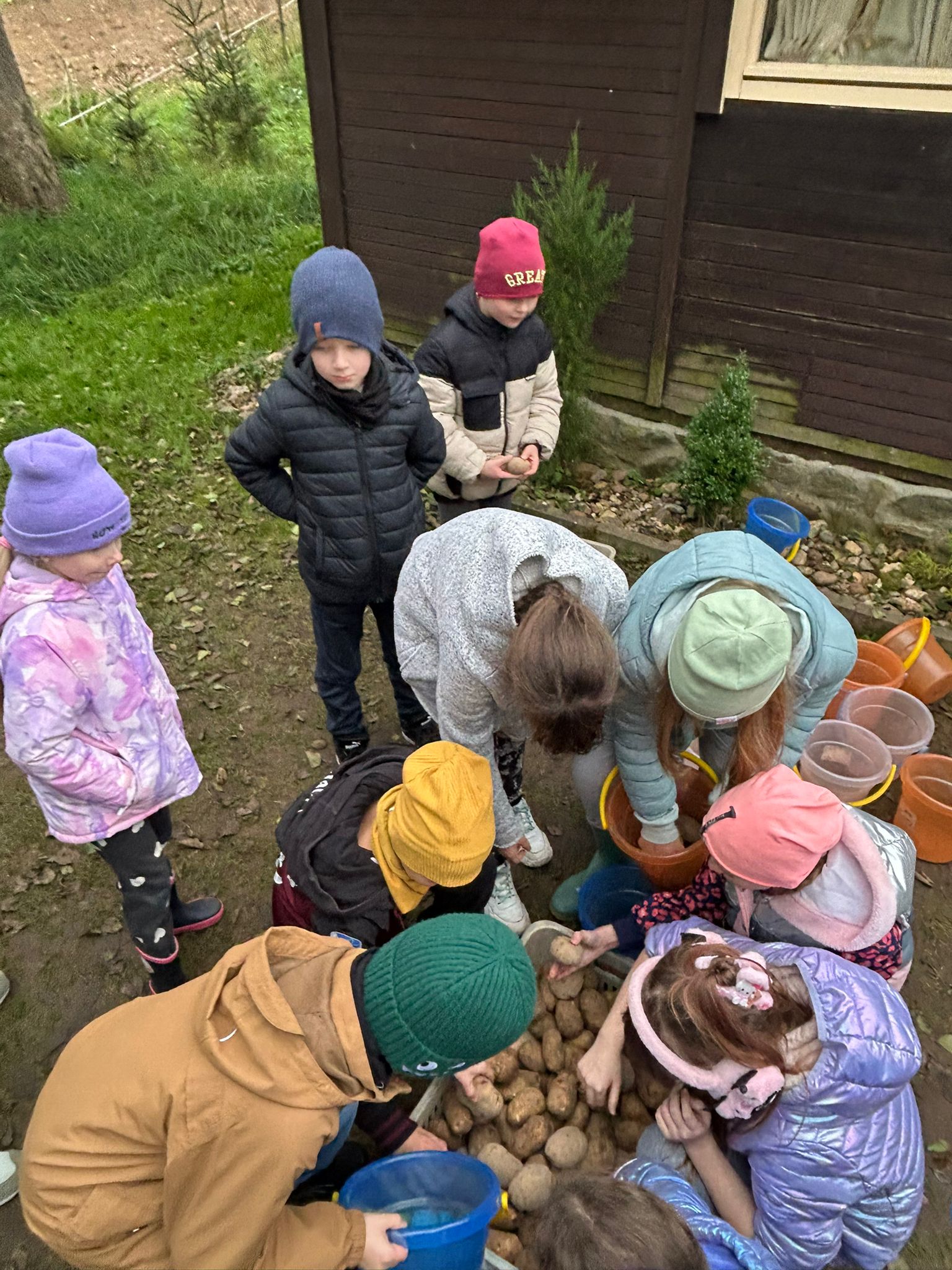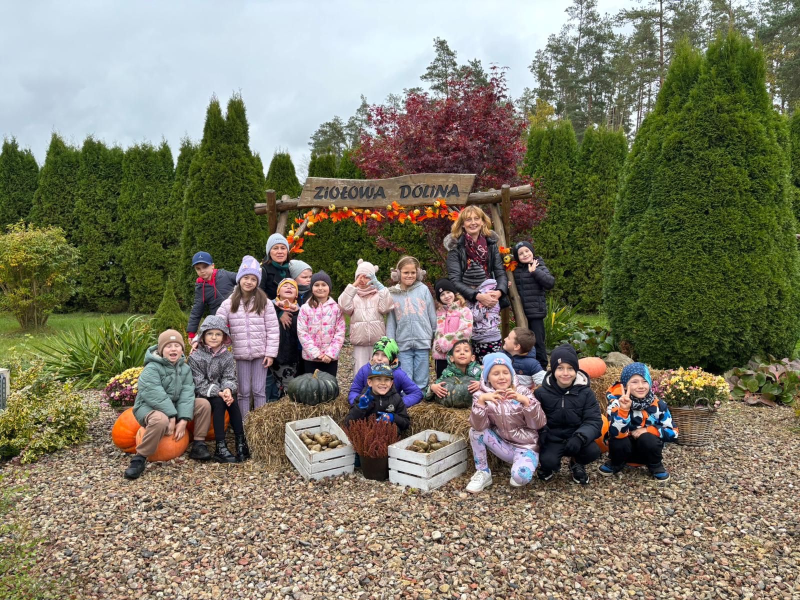 W czwartek, 16 października, najmłodsi uczniowie naszej Szkoły spędzili wspaniały dzień w Ziołowej Dolinie. Podczas pobytu w gospodarstwie agroturystycznym dzieci miały okazję poznać i nakarmić zwierzęta hodowlane – kozy, króliki, kucyki oraz lamy. Brały także udział w wykopkach i młóceniu zboża, poznając w ten sposób dawne prace rolnicze. Po pracy na wszystkich czekał aromatyczny rosół, pieczone ziemniaki i kiełbaski. Nie zabrakło też wspólnych zabaw na świeżym powietrzu, które dostarczyły dzieciom wiele radości. To był dzień pełen pozytywnych emocji!