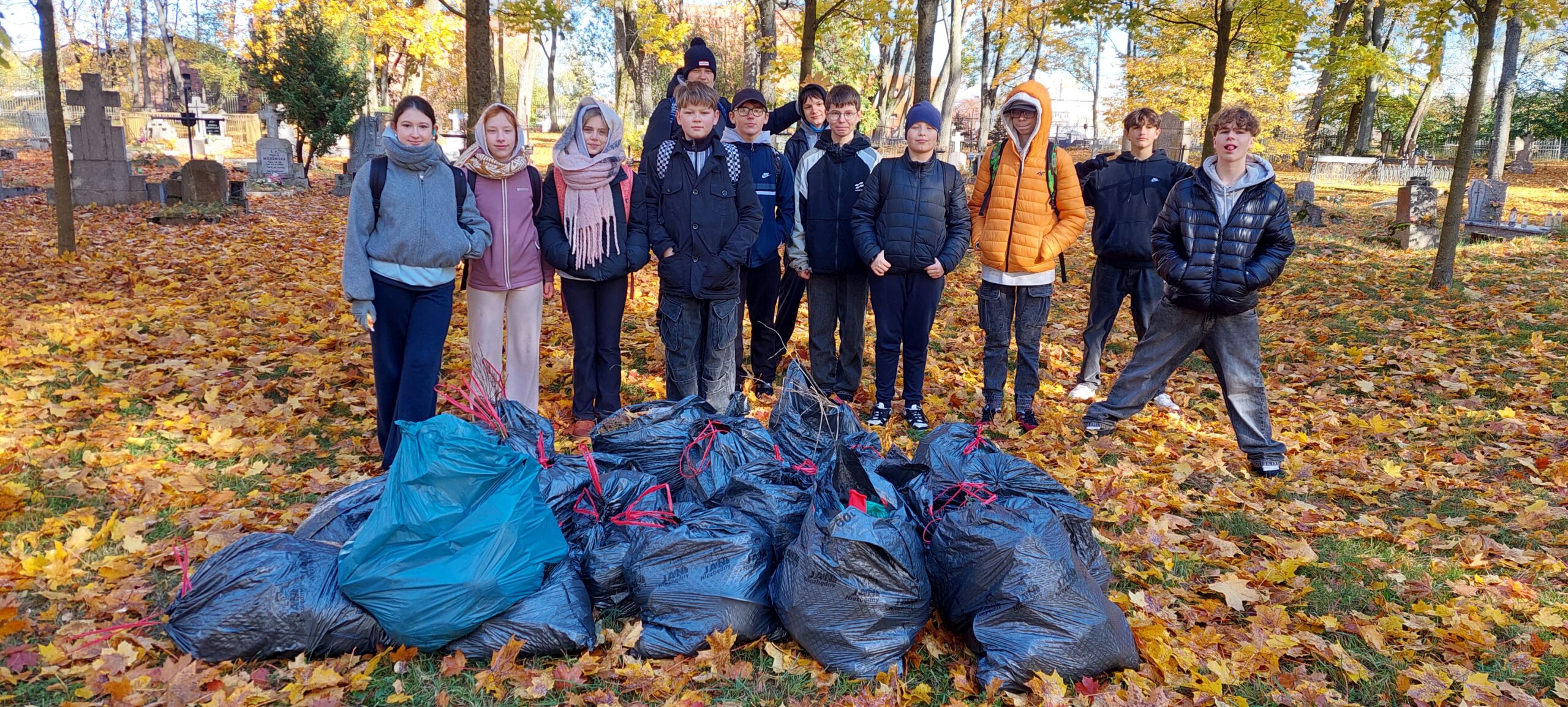 Dnia 20 października uczniowie klasy 8a oraz członkowie Szkolnego Koła Wolontariatu wzięli udział w akcji porządkowania zabytkowego cmentarza św. Jakuba w Olsztynie. Do pracy uczniowie zostali wyposażeni w worki, rękawice i chwytaki na śmieci, które otrzymaliśmy od firmy Michelin. Jesteśmy bardzo wdzięczni za wsparcie ze strony Michelin, dzięki któremu nasza akcja mogła przebiec sprawnie i bezpiecznie. Takie działania uczą młodzież odpowiedzialności, szacunku dla historii i troski o wspólne dziedzictwo.
