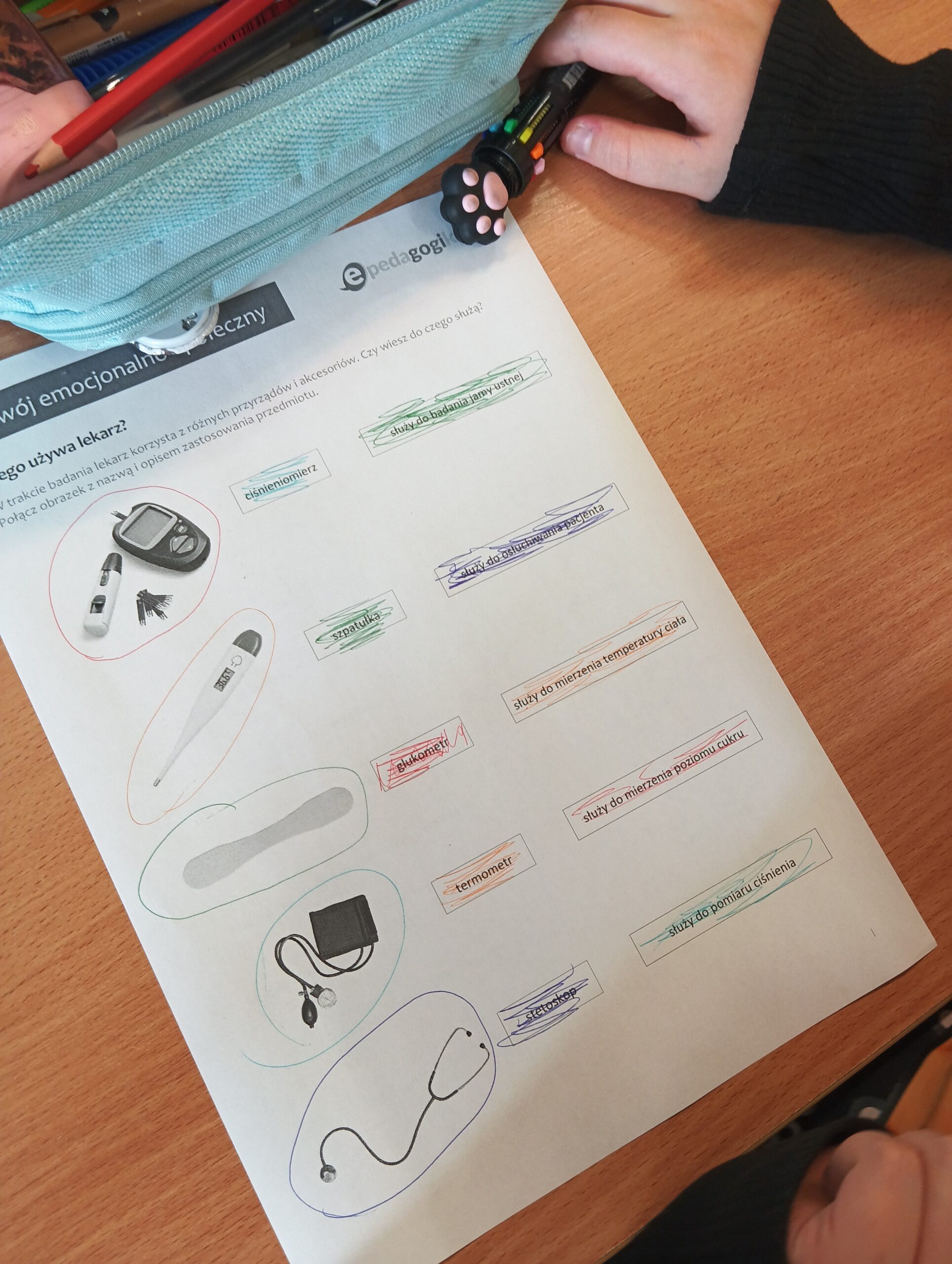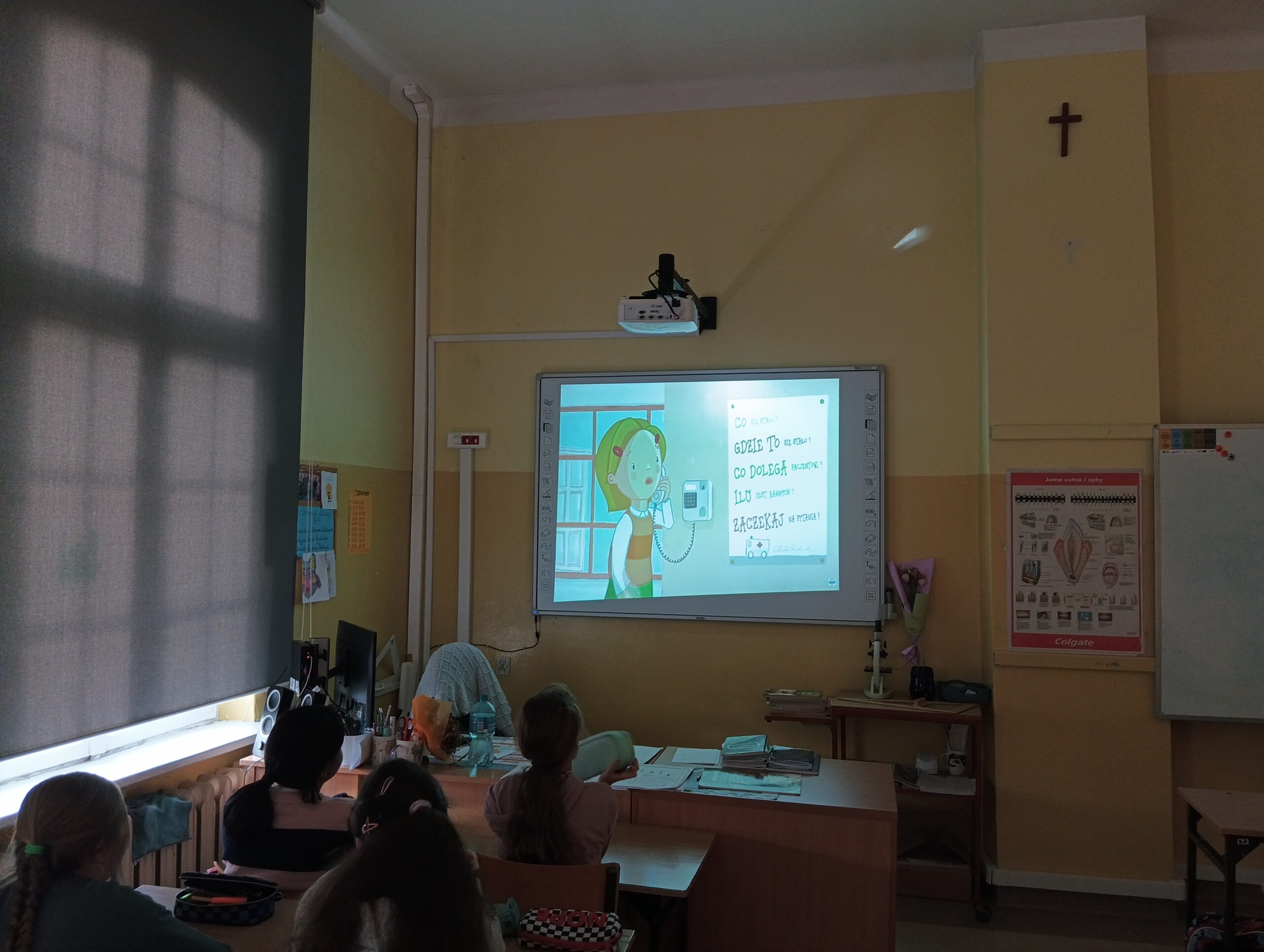 Na ostatnich dwóch lekcjach edukacji zdrowotnej uczniowie klas 4 dyskutowali na temat niepokojących objawów, które należy konsultować z lekarzem. Zastanawiali się, jak należy przygotować się do wizyty w przychodni. Uczniowie poznawali poszczególnych specjalistów, do których należy się udać w przypadku konkretnych problemów zdrowotnych. Oglądali film edukacyjny oraz prezentację multimedialną dotyczącą udzielania pierwszej pomocy. Przypominali sobie również najważniejsze zasady dotyczące wzywania karetki pogotowia.