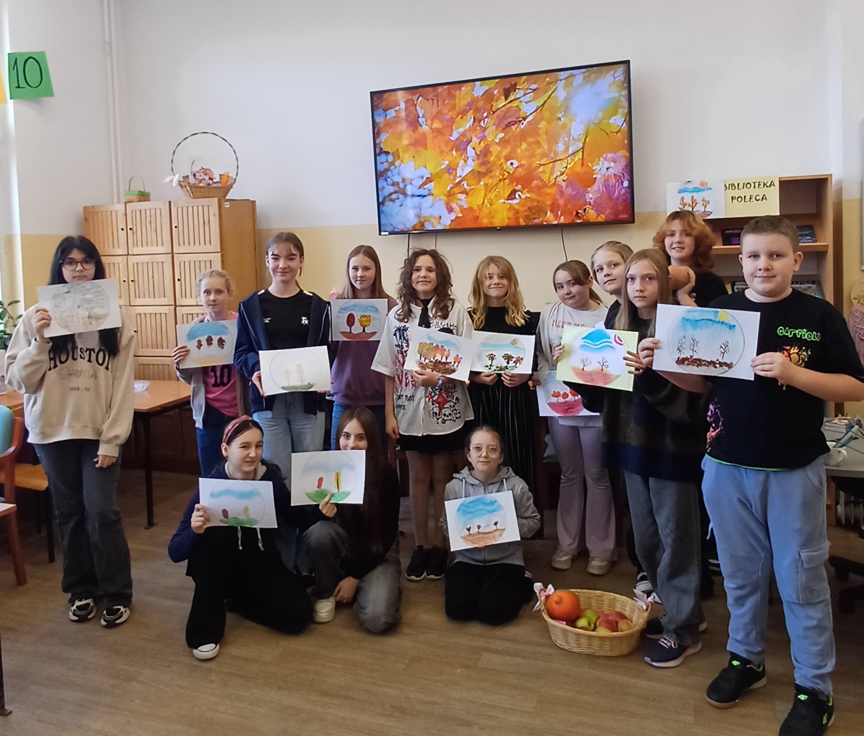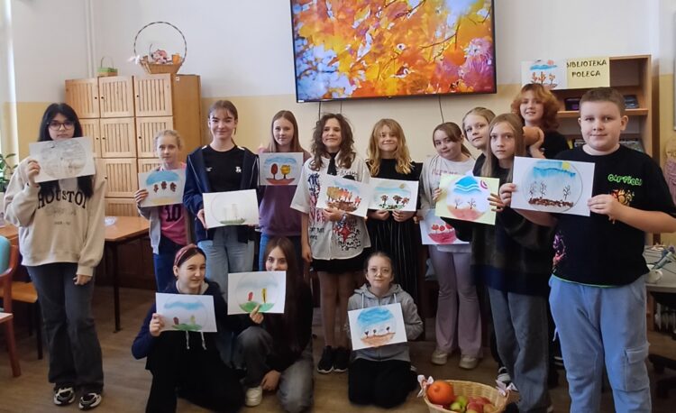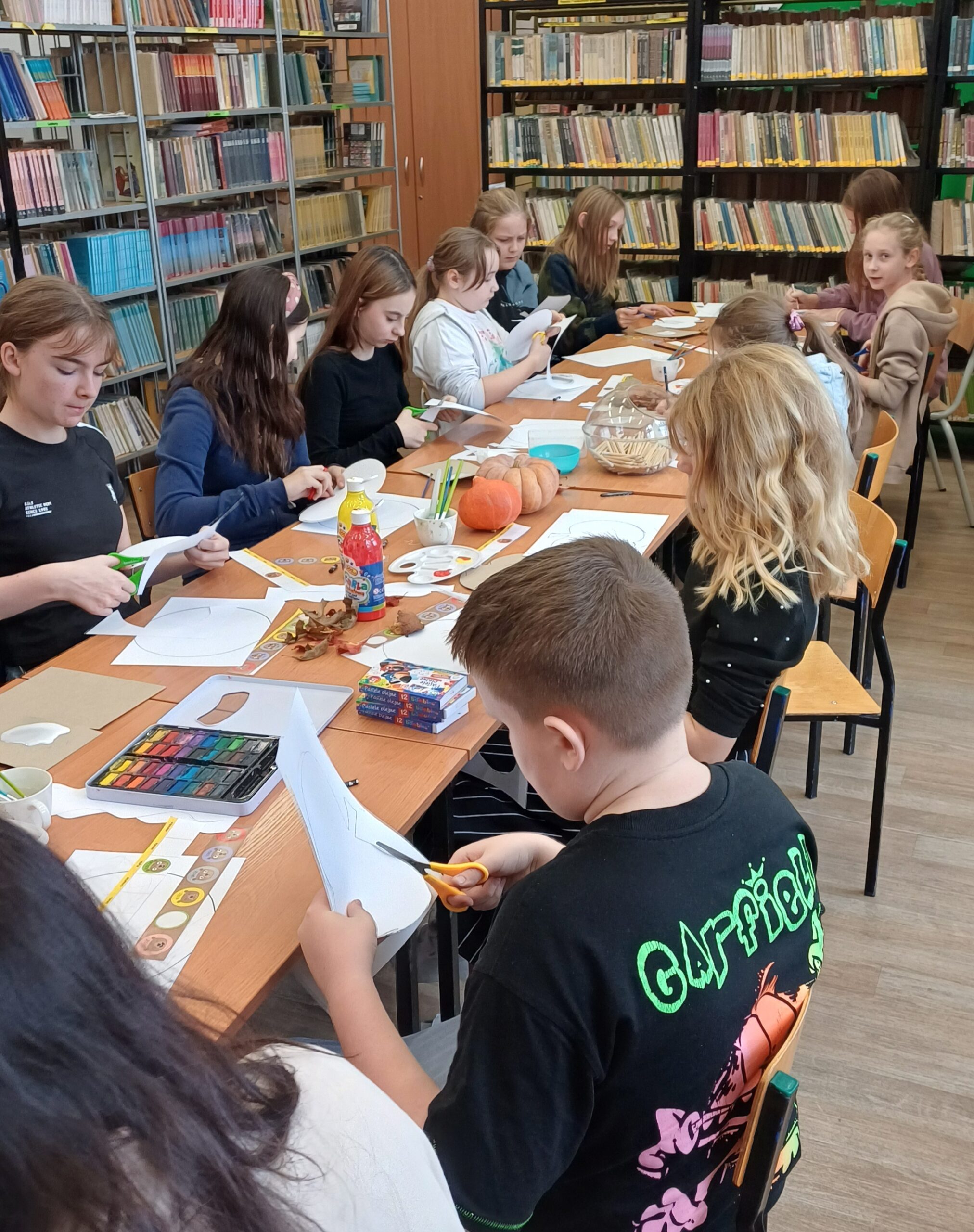 W ostatnim dniu października biblioteka szkolna zorganizowała warsztaty literacko-plastyczne, których tematem przewodnim była kolorowa jesień. Uczniowie tworzyli swoje barwne prace zainspirowani wierszem Doroty Gellner “Jesienny pociąg”. Warsztaty odbyły się w ramach Międzynarodowego Miesiąca Bibliotek Szkolnych.