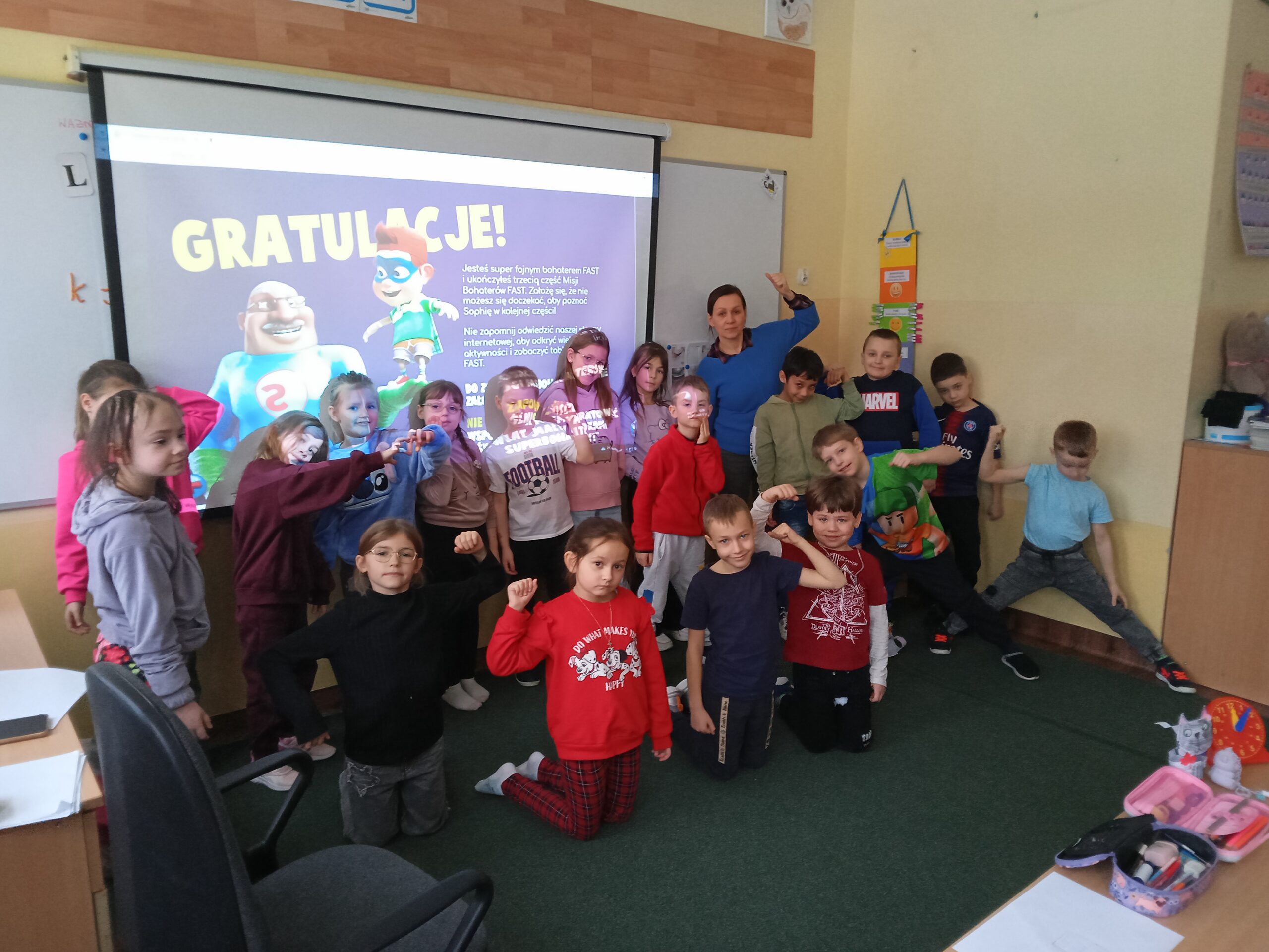 Za uczniami klas I kolejne spotkanie z bohaterami FAST TEAM. Tym razem dzieci poznały bliżej dziadka Arnolda oraz jego historię, gdy ZŁY SKRZEP go zaatakował.