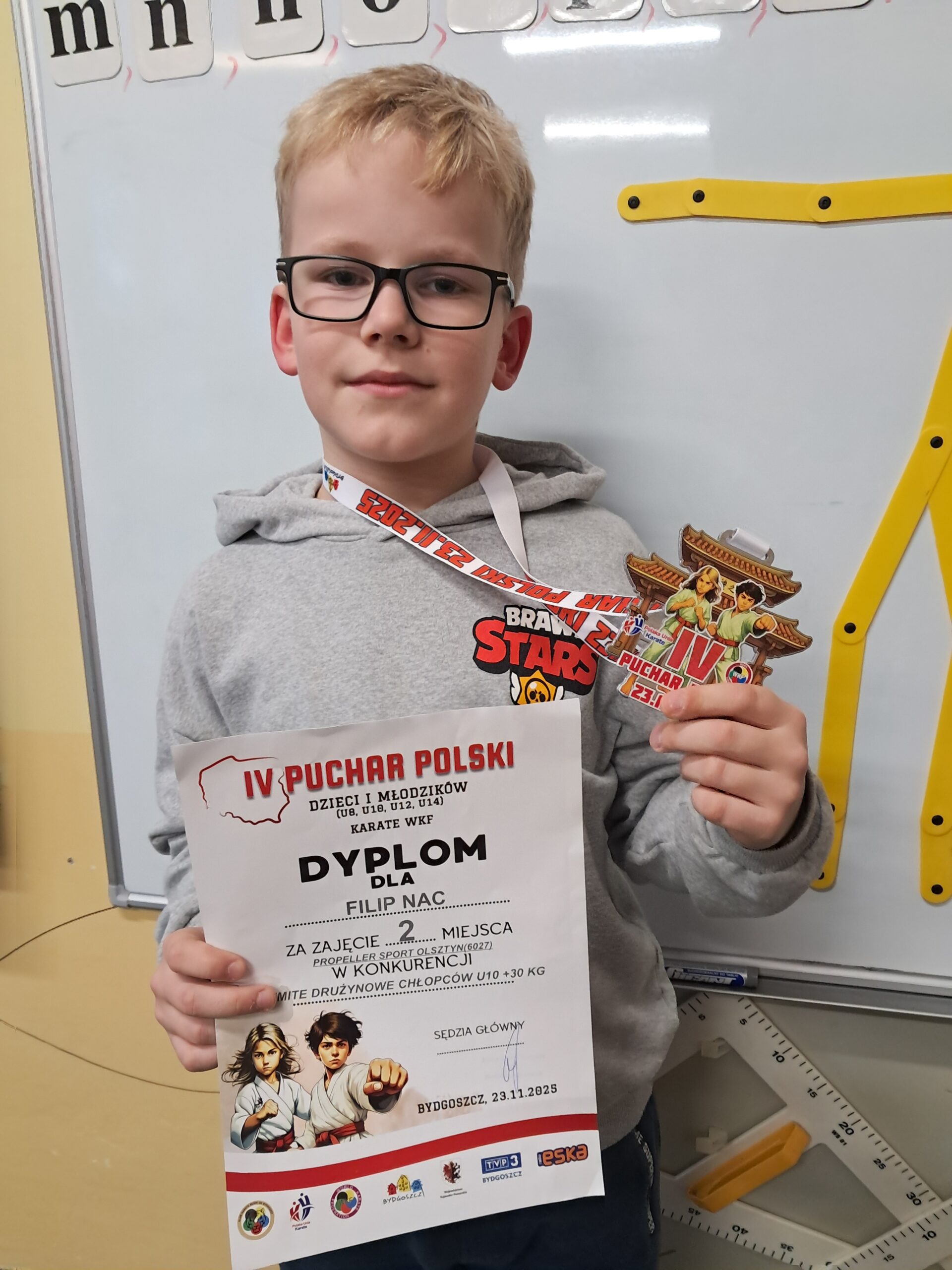 Sukcesy ucznia klasy II a 4 gru,2025 Natalia Kąkiel Filip Nąć zdobywa medale w pozaszkolnych zawodach karate. Gorąco gratulujemy i jesteśmy dumni!!!
