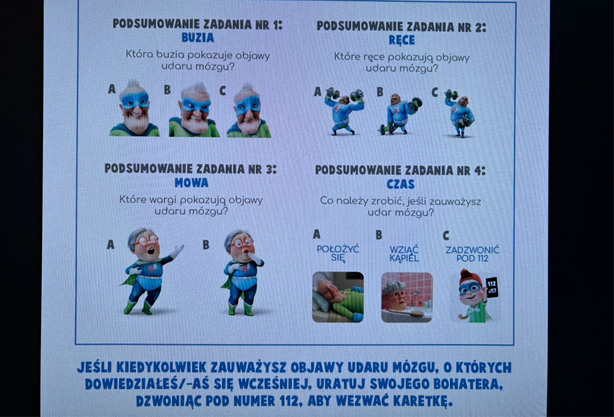 Za uczniami klas pierwszych ostatnie spotkanie z superbohaterami drużyny FAST TEAM – międzynarodowego programu edukacyjnego, który uczy najmłodszych rozpoznawania objawów udaru mózgu i szybkiego reagowania.