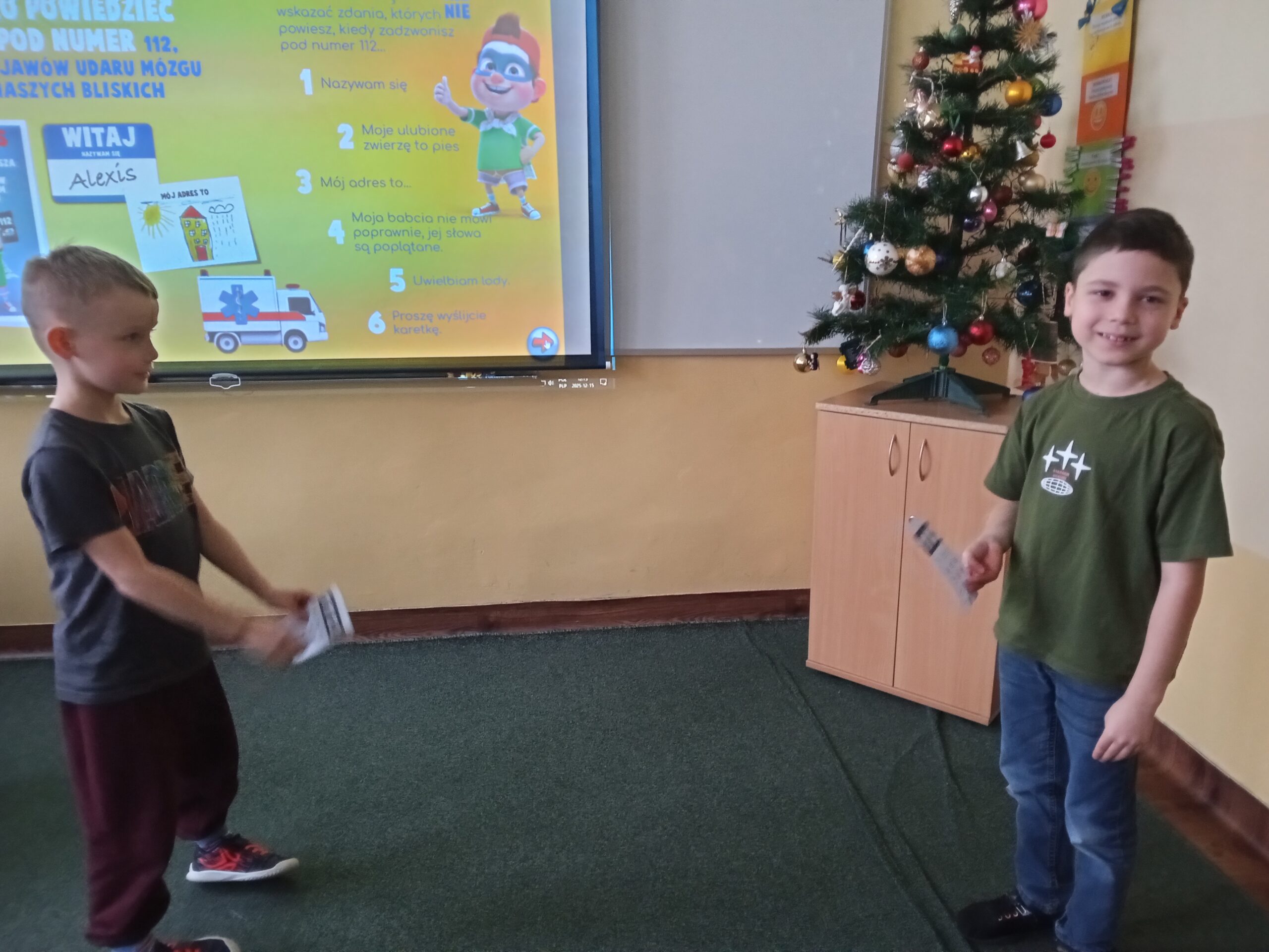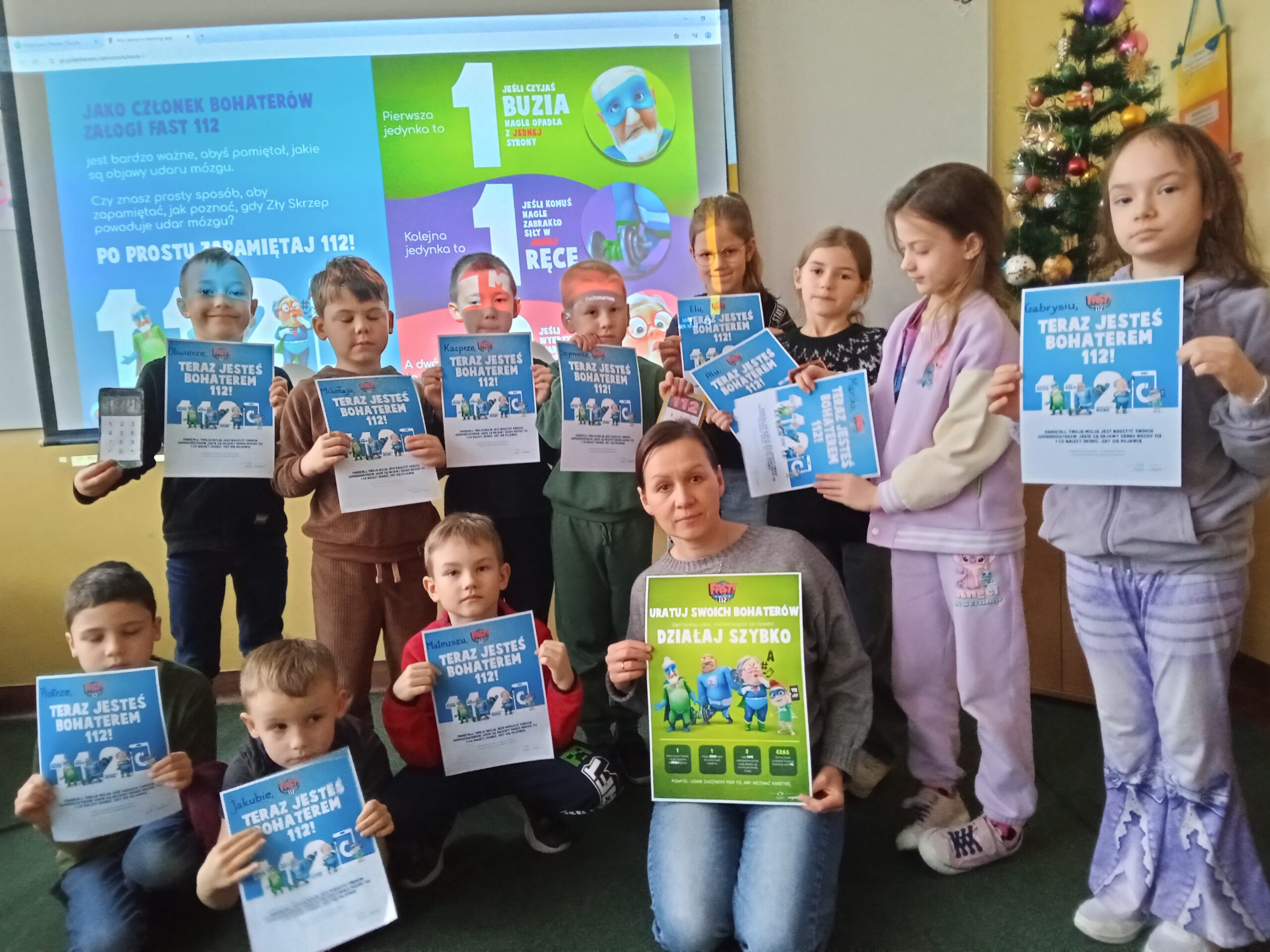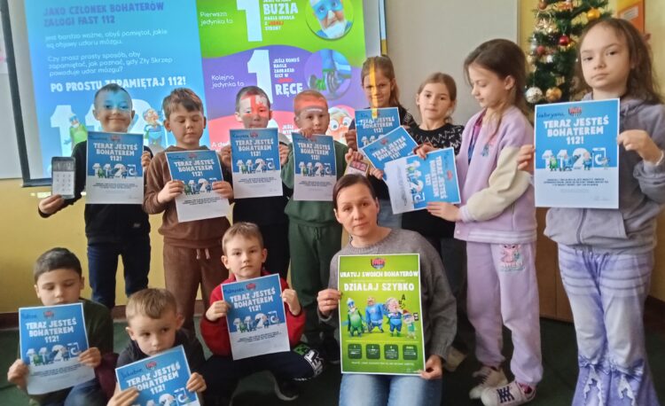 Uczniowie mieli okazję sprawdzić swoją wiedzę w interaktywnym quizie, a umiejętność szybkiego wzywania pomocy medycznej w scenkach sytuacyjnych. Na zakończenie wszyscy uczniowie otrzymali dyplom członka DRUŻYNY FAST HEROES.