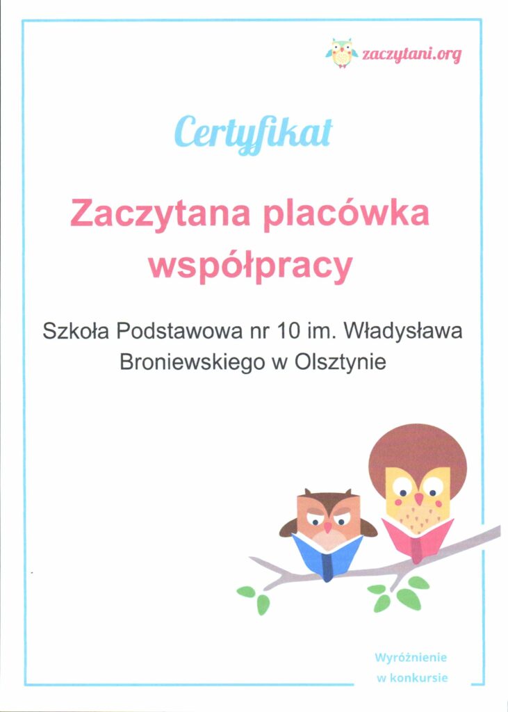 Certyfikat “Zaczytanej Placówki Współpracy”;