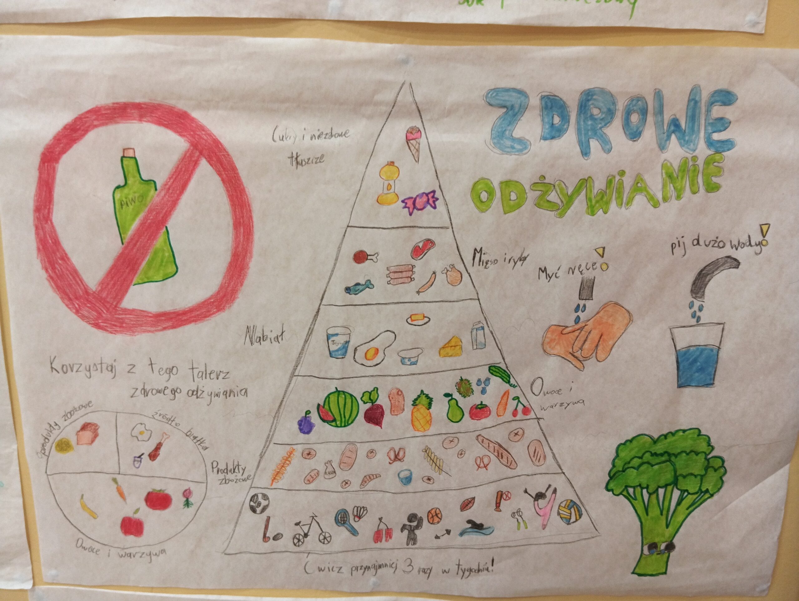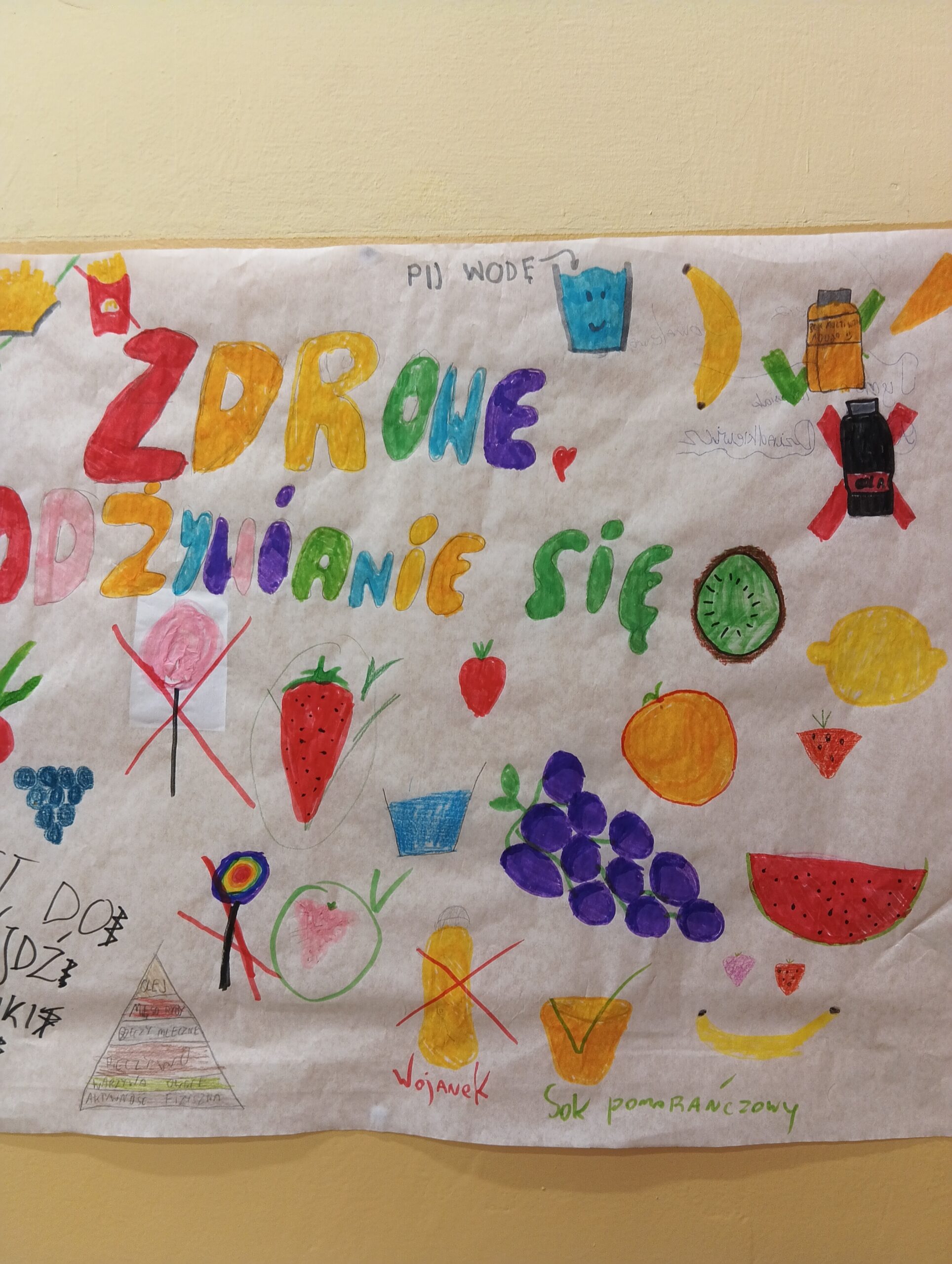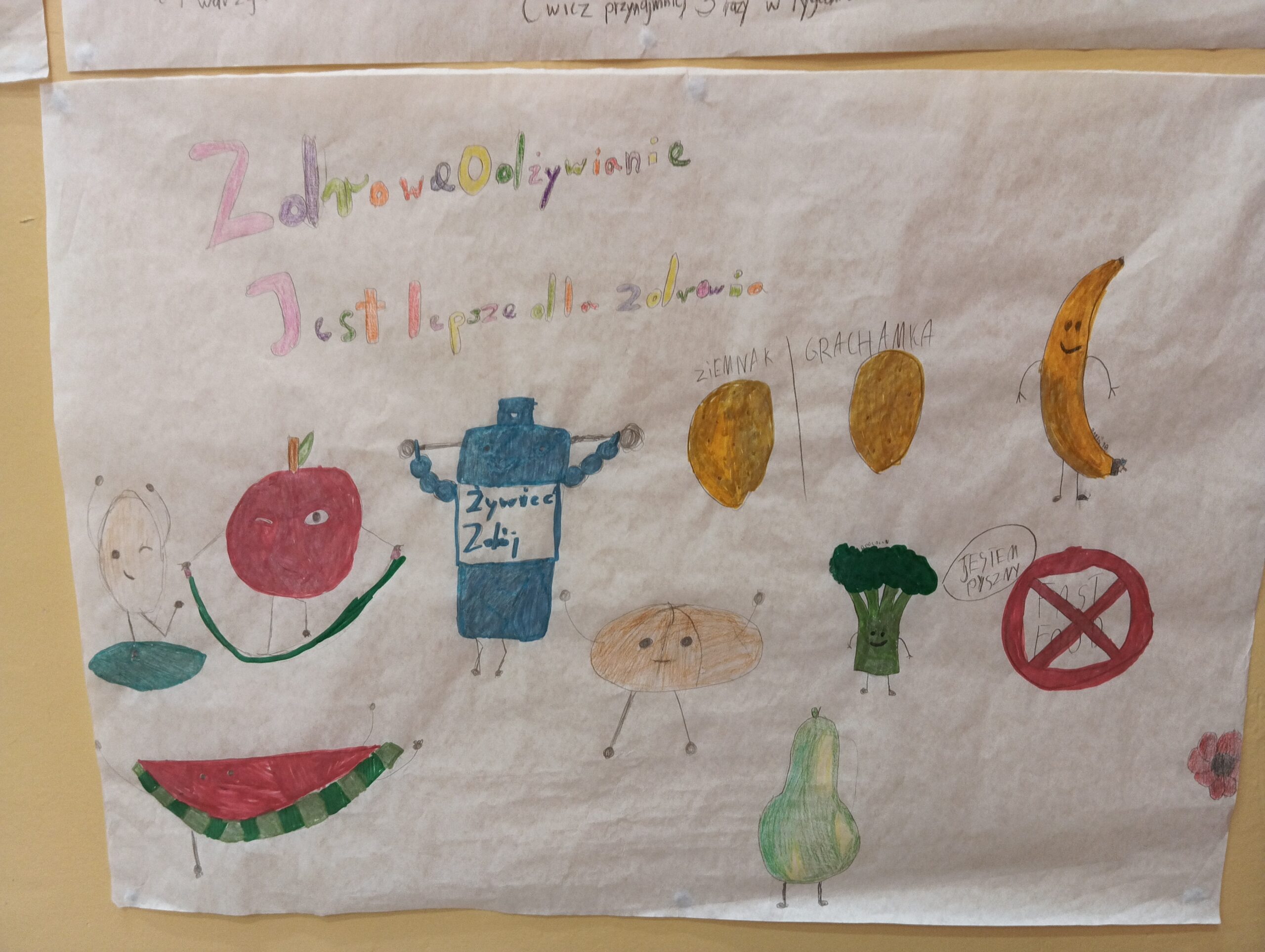 Uczniowie naszej szkoły podczas zajęć edukacji zdrowotnej tworzyli swoje autorskie plakaty promujące zdrowe nawyki żywieniowe. Jednocześnie uczestniczymy w cyklu zajęć edukacyjnych dotyczących prawidłowo zbilansowanej diety oraz przeciwdziałaniu marnowania jedzenia w ramach Ogólnopolskiego Programu Akademia Lubella. Oto kilka fotografii z zajęć i twórczości naszych wychowanków.