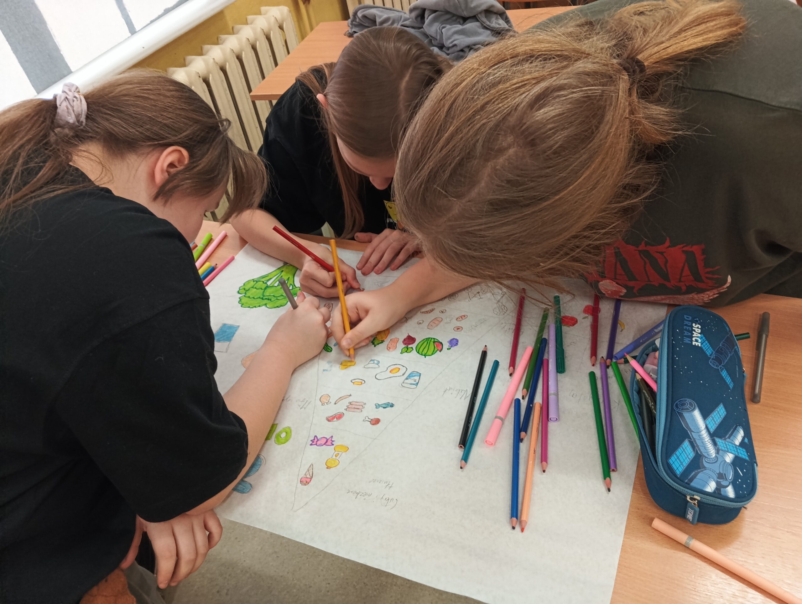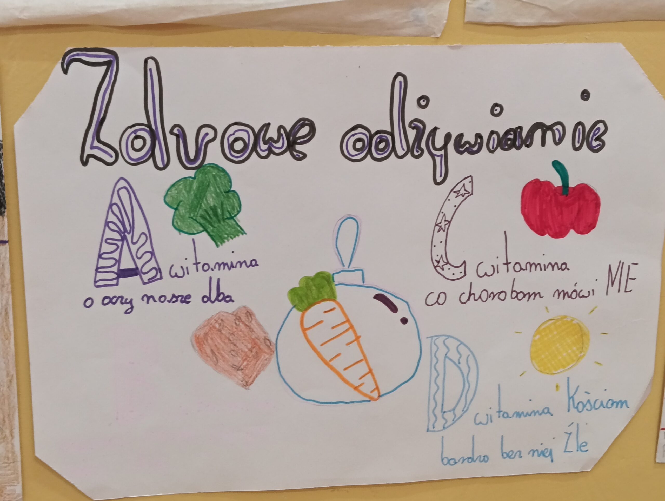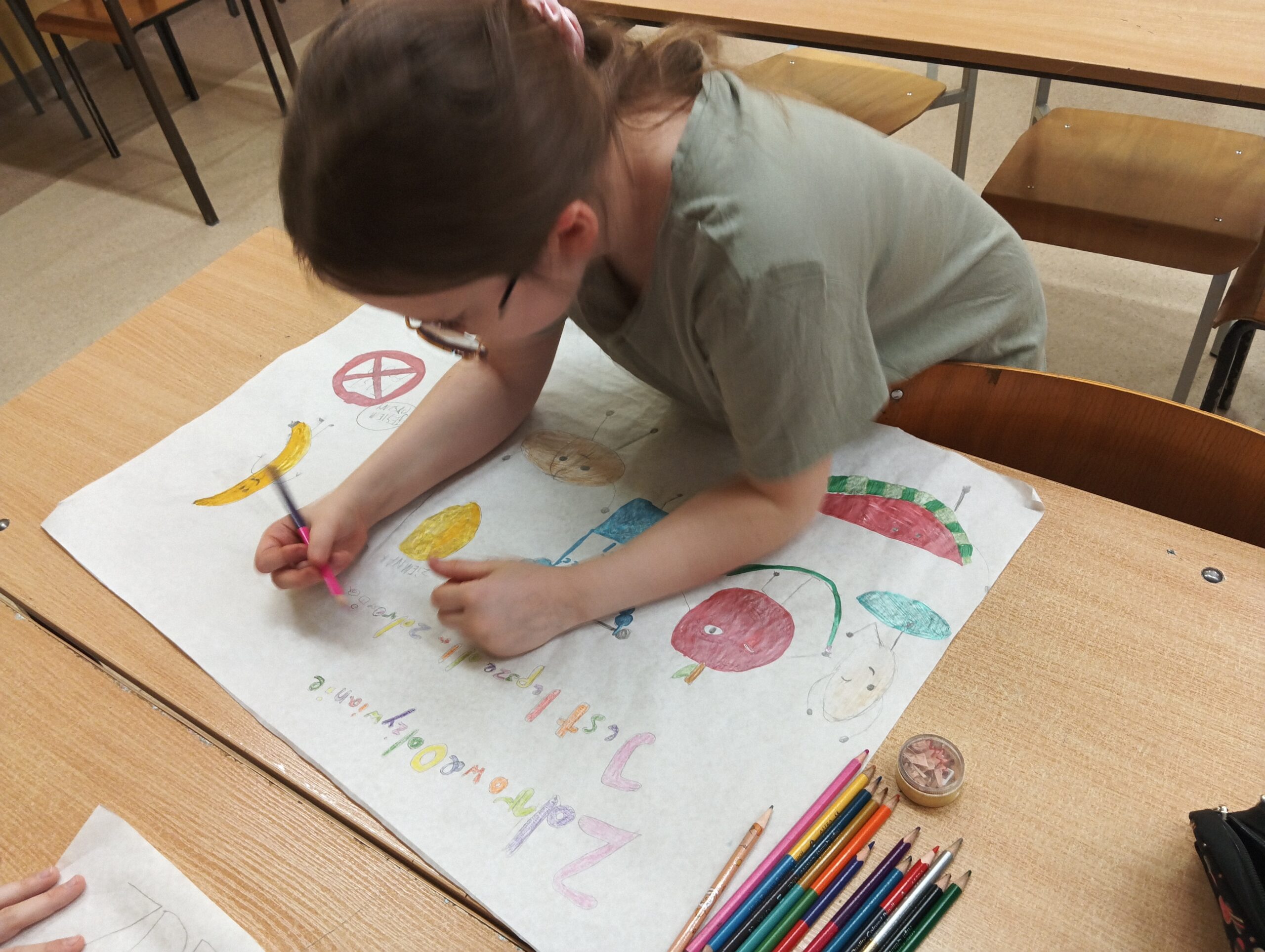 Uczniowie naszej szkoły podczas zajęć edukacji zdrowotnej tworzyli swoje autorskie plakaty promujące zdrowe nawyki żywieniowe. Jednocześnie uczestniczymy w cyklu zajęć edukacyjnych dotyczących prawidłowo zbilansowanej diety oraz przeciwdziałaniu marnowania jedzenia w ramach Ogólnopolskiego Programu Akademia Lubella. Oto kilka fotografii z zajęć i twórczości naszych wychowanków.