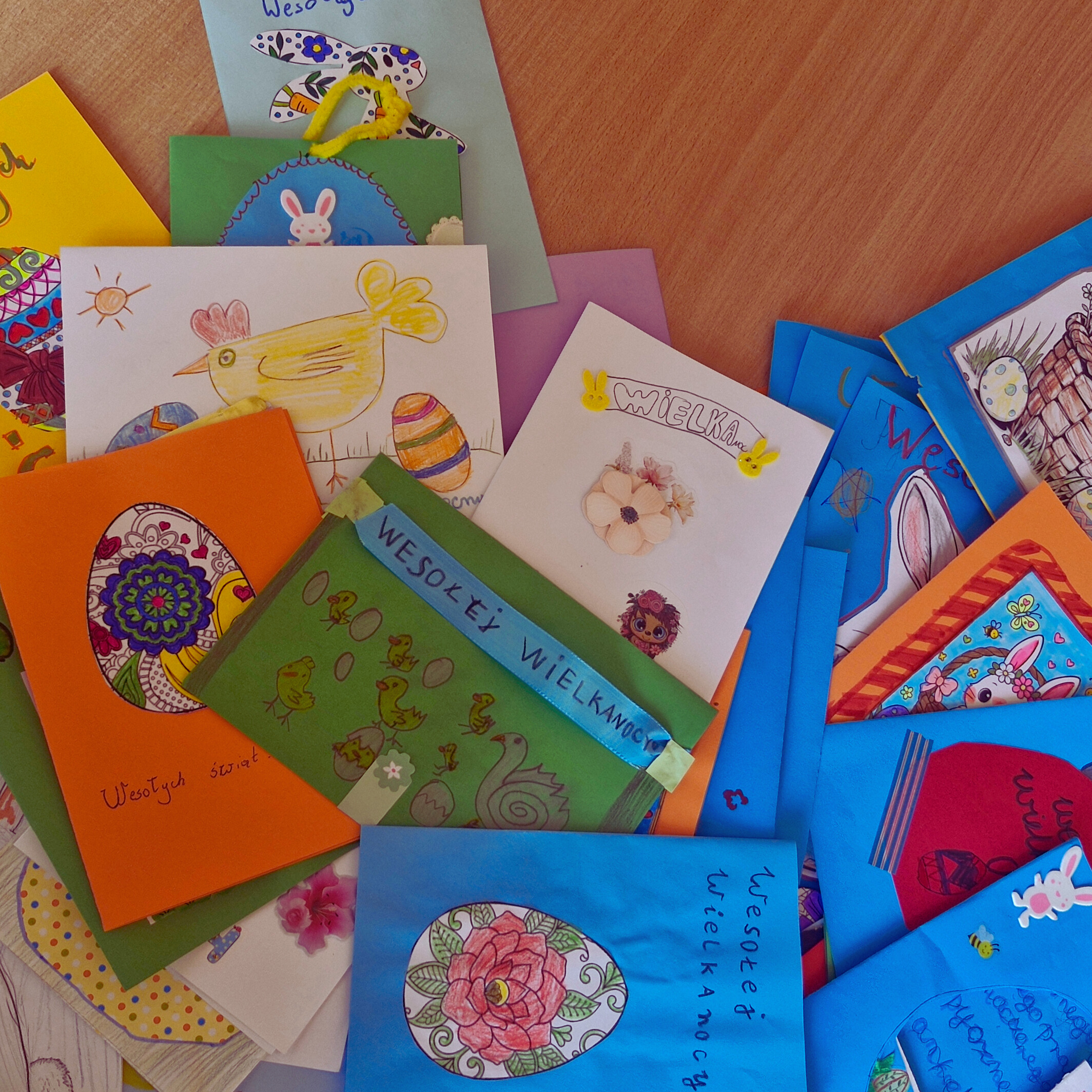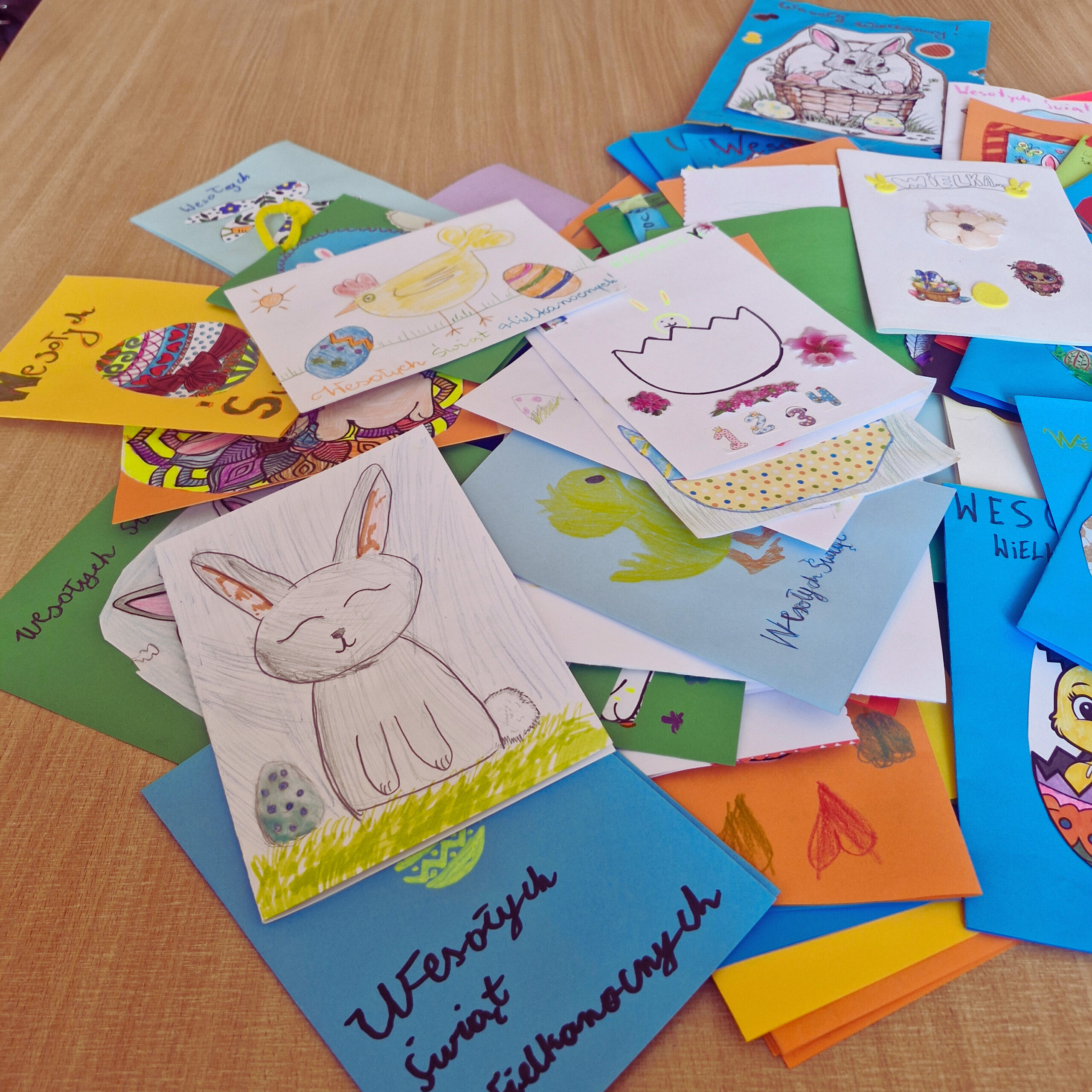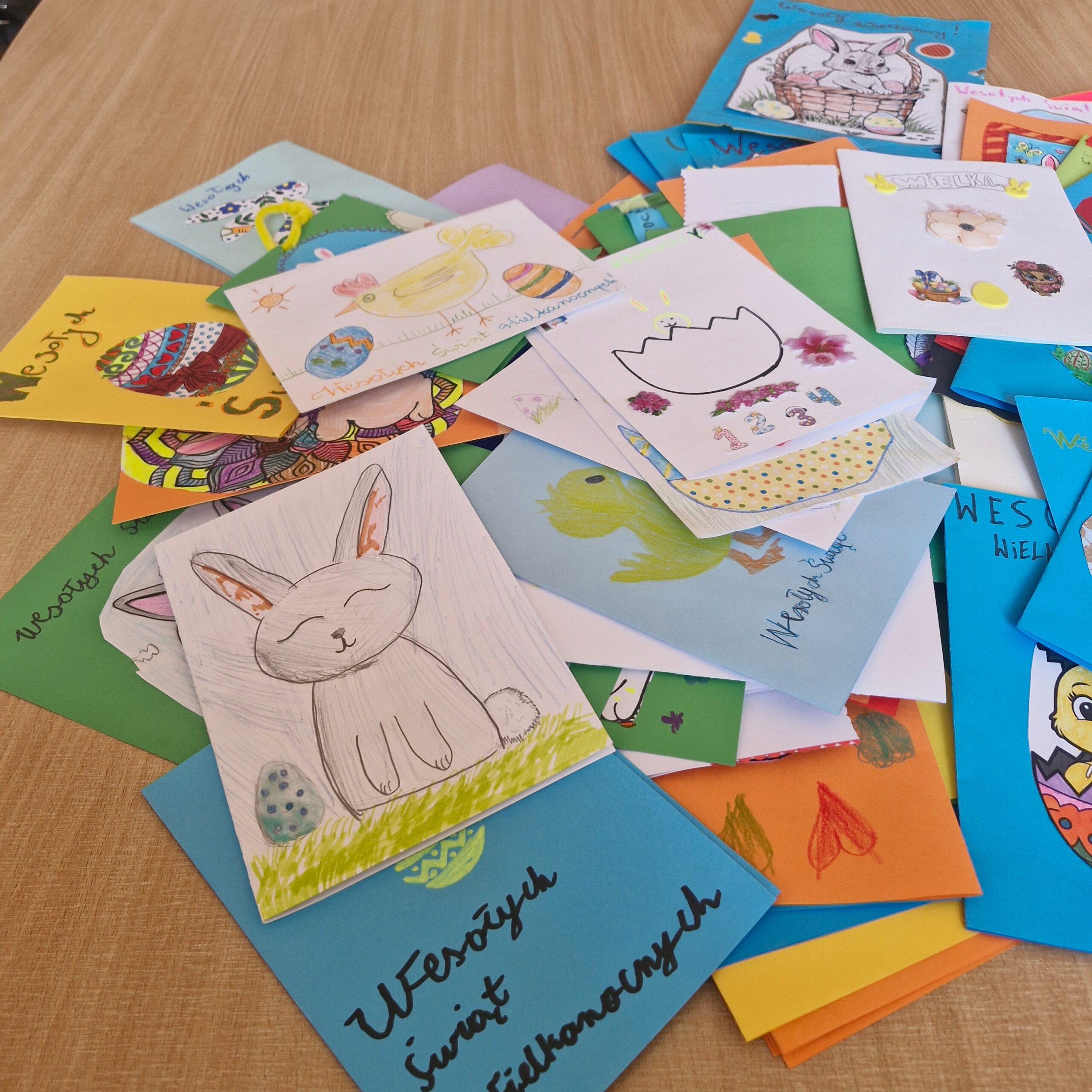 W marcu podczas lekcji etyki nasi uczniowie zaangażowali się w przygotowanie wyjątkowych kartek wielkanocnych dla podopiecznych PCK. Była to nie tylko praca plastyczna, ale przede wszystkim piękna lekcja wrażliwości, życzliwości i pamięci o drugim człowieku. Zarówno młodsi, jak i starsi uczniowie z dużym zapałem projektowali i ozdabiali swoje kartki, starając się, aby każda z nich była niepowtarzalna i niosła ze sobą ciepłe, płynące prosto z serca życzenia świąteczne.