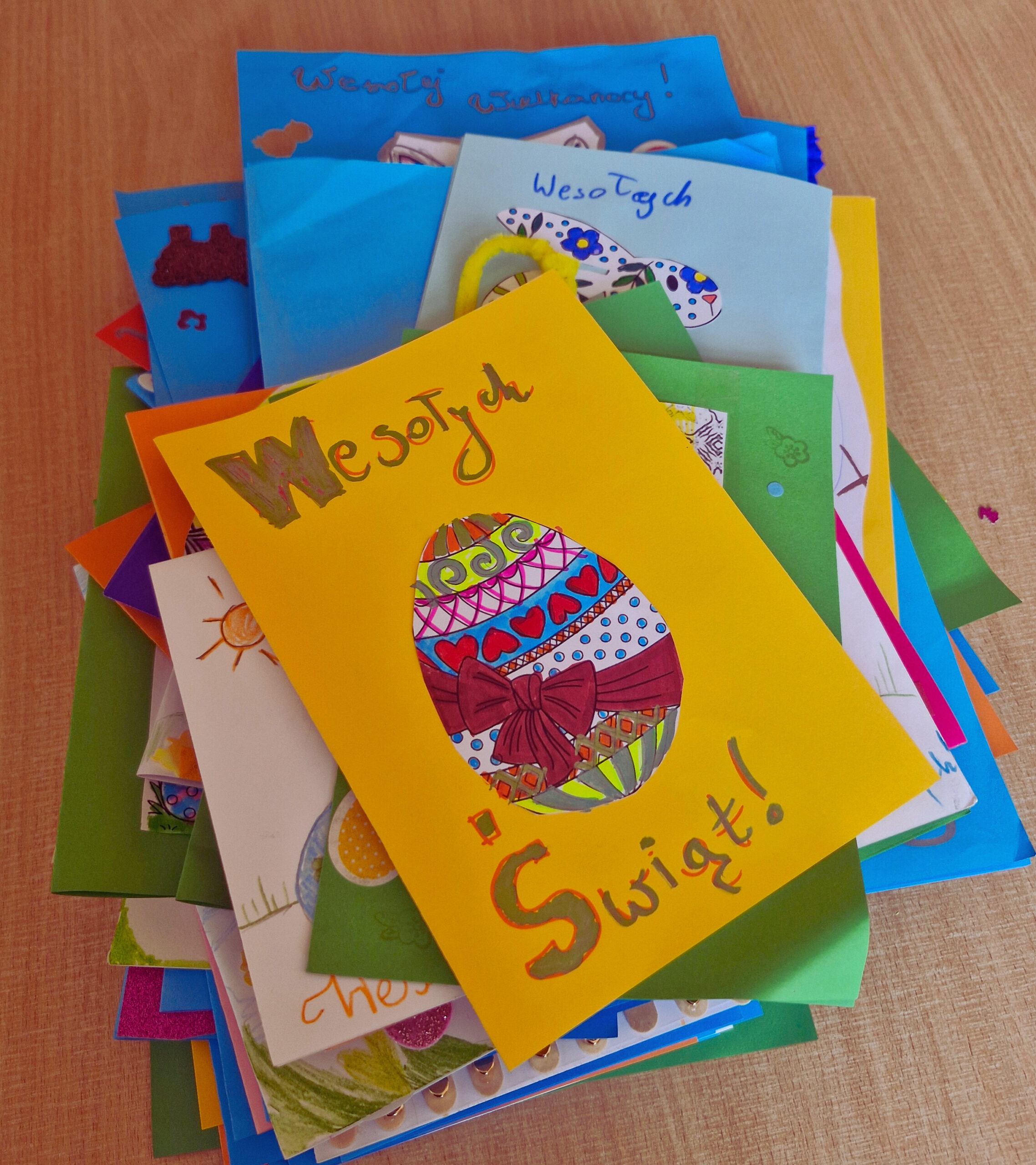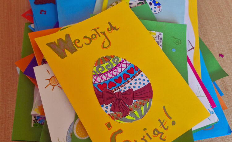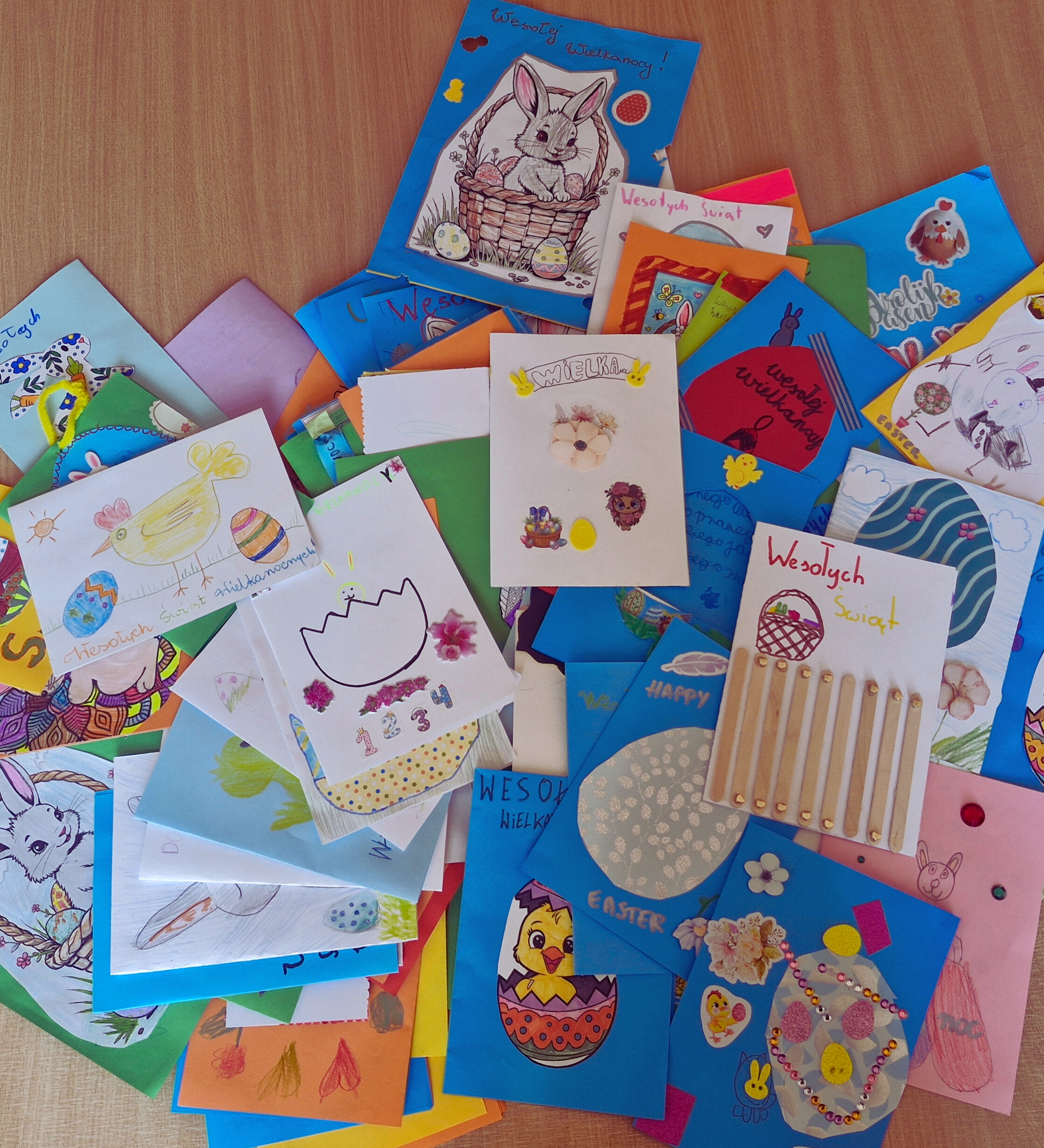 W marcu podczas lekcji etyki nasi uczniowie zaangażowali się w przygotowanie wyjątkowych kartek wielkanocnych dla podopiecznych PCK. Była to nie tylko praca plastyczna, ale przede wszystkim piękna lekcja wrażliwości, życzliwości i pamięci o drugim człowieku. Zarówno młodsi, jak i starsi uczniowie z dużym zapałem projektowali i ozdabiali swoje kartki, starając się, aby każda z nich była niepowtarzalna i niosła ze sobą ciepłe, płynące prosto z serca życzenia świąteczne.