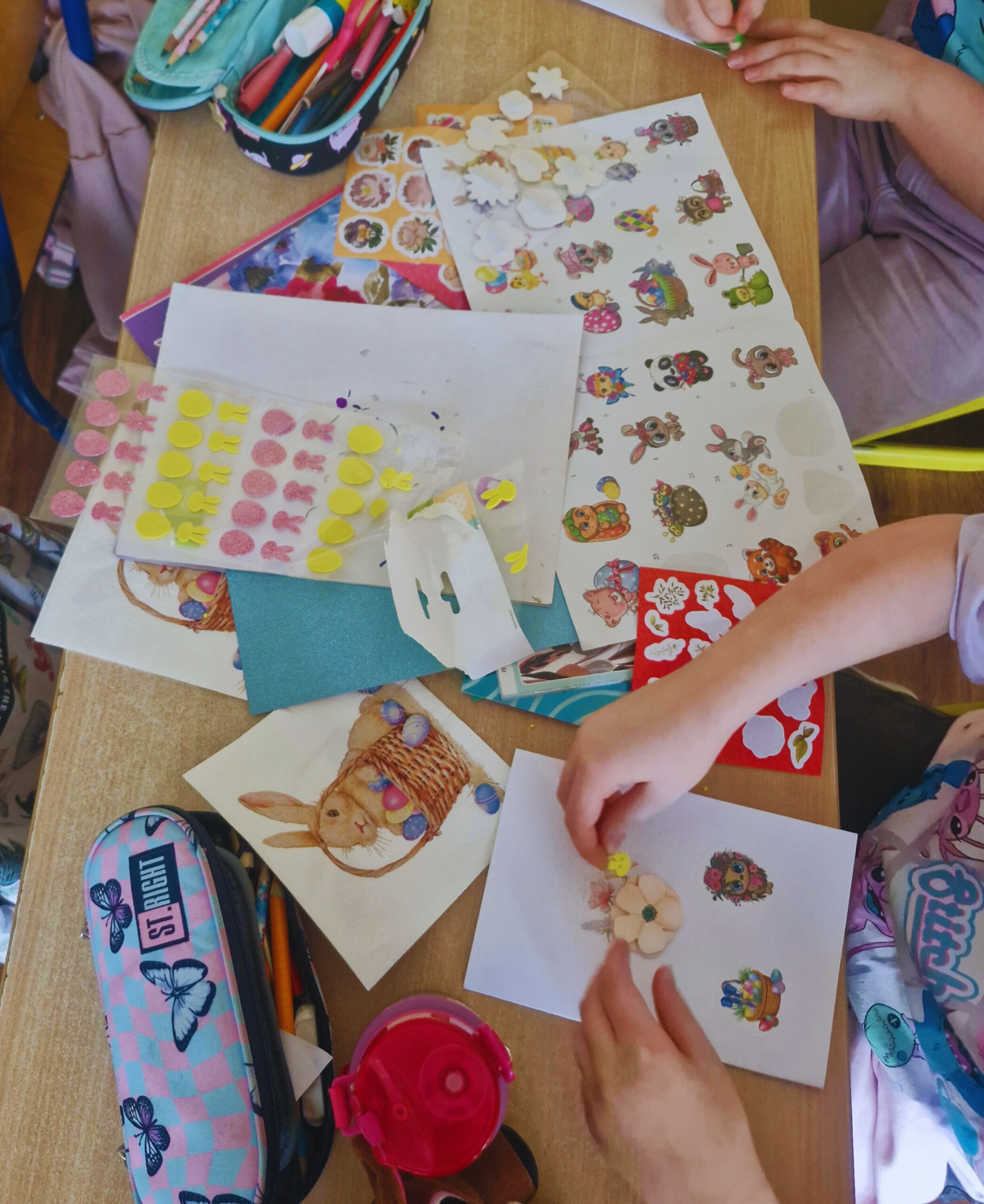 Podczas zajęć nie brakowało kolorów, kreatywnych pomysłów i uśmiechów. Uczniowie z ogromnym zaangażowaniem tworzyli swoje małe dzieła, wkładając w nie wiele serca i dobrej energii. Dzięki temu powstały piękne, barwne kartki, które – mamy nadzieję – przyniosą ich odbiorcom wiele radości, wywołają uśmiech i wprowadzą do ich domów odrobinę wielkanocnego ciepła.